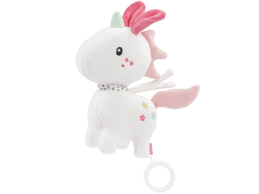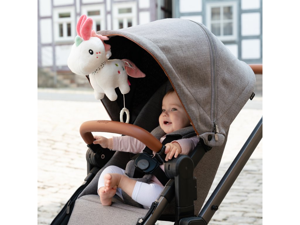 Roztomilý jednorožec z kolekce Aiko & Yuki je nejen věrným společníkem, ale uklidňuje a utěšuje svou příjemnou ukolébavkou.Díky své pohodlné velikosti a zapínacím stužkám může být vždy po boku dítěte.