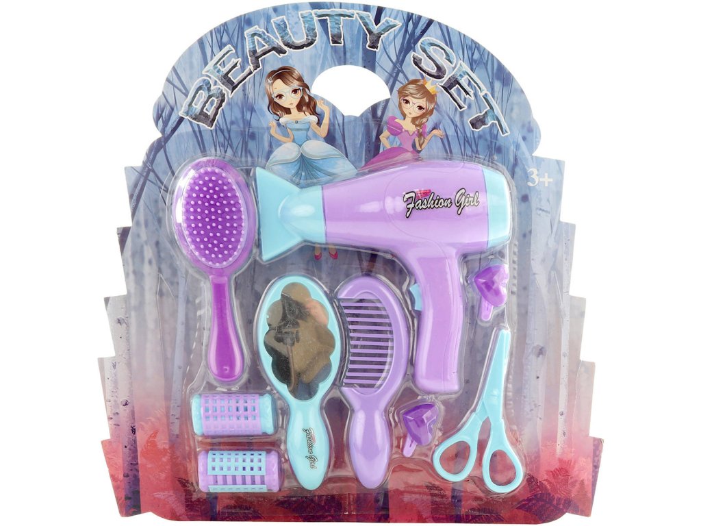 Kadeřnická plastová souprava pro zkrášlování vlasů, pro všechny malé parádnice a kadeřnice. Kadeřnické potřeby obsažené v této sadě vylepší hry pro dívky na kadeřnice a kosmetičky. Téměř každá malá holčička touží být kadeřnicí. Pořiďte jí tedy tento kadeřnický set s fénem, hřebenem, sponkami a dalšími doplňky.