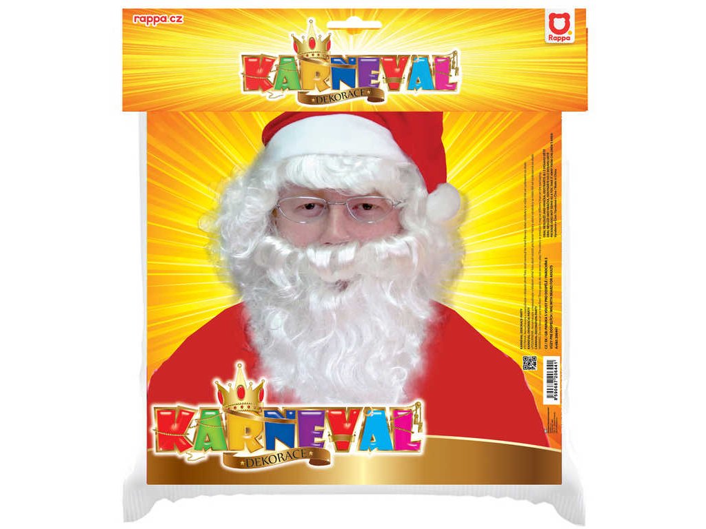 Karnevalová paruka s vousy Santa Klaus / Mikuláš. Určeno pro starší děti nebo dospělé. Baleno v sáčku.