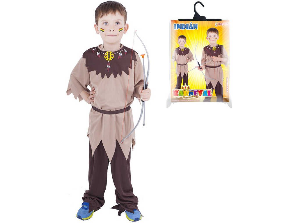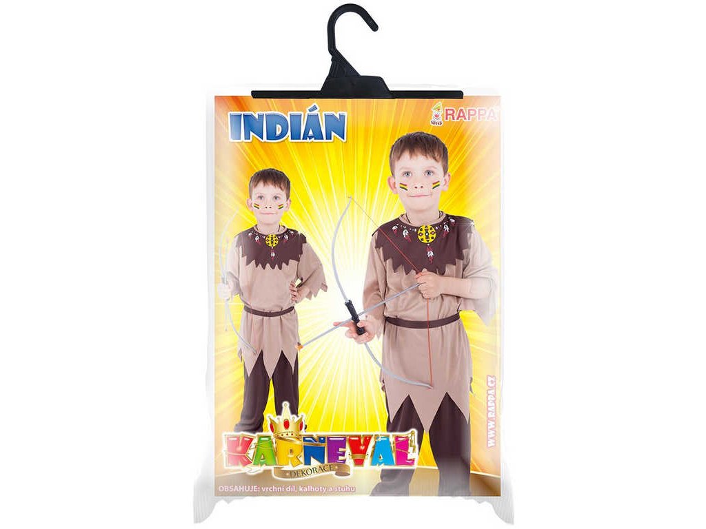 Stylový karnevalový kostým s motivem indiána! Kostým hnědé barvy ve velikosti S je určen pro chlapečky ve věkovém rozmezí 4-6 let (110-116 cm). Balení obsahuje horní díl s indiánským vzorem, kalhoty a pásek.