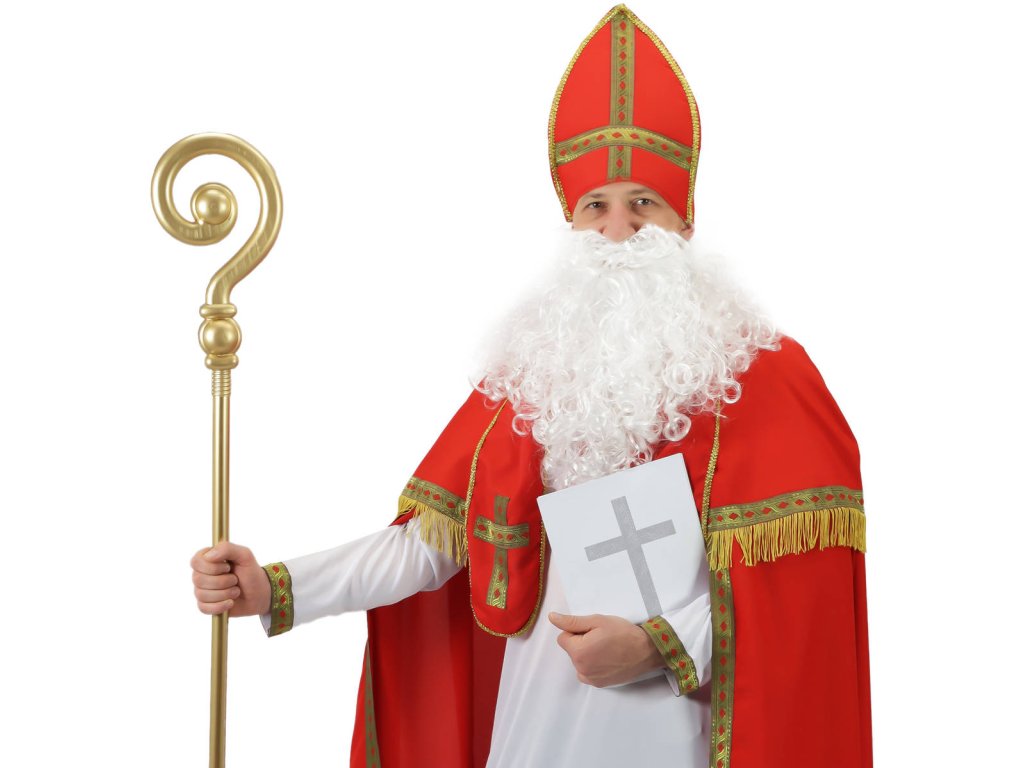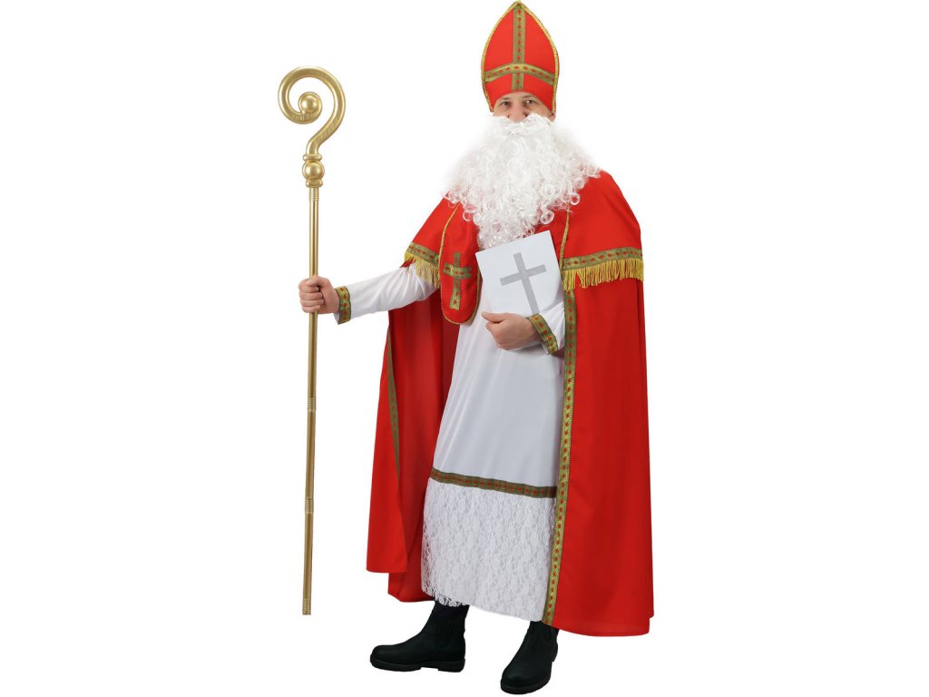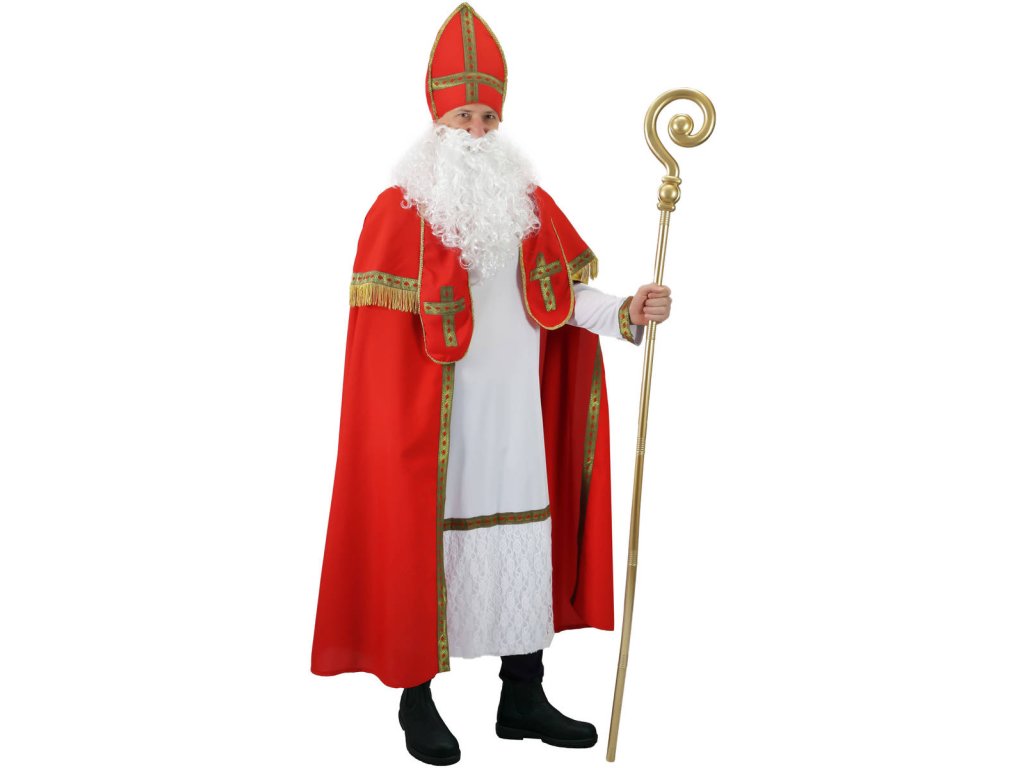 Exkluzivní karnevalový kostým Mikuláše pro dospělé. Kostým obsahuje mikulášskou čepici, dlouhé bíle roucho, červený plášť s límečkem a šerpu s křížem. Neobsahuje hůl ani vousy! Délka bílého roucha od ramen dolů je cca 140 cm.