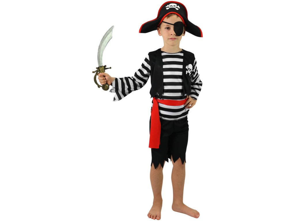Obsah balení: horní díl, kalhoty, pásek, klapka na oko, stylová pirátská čepice