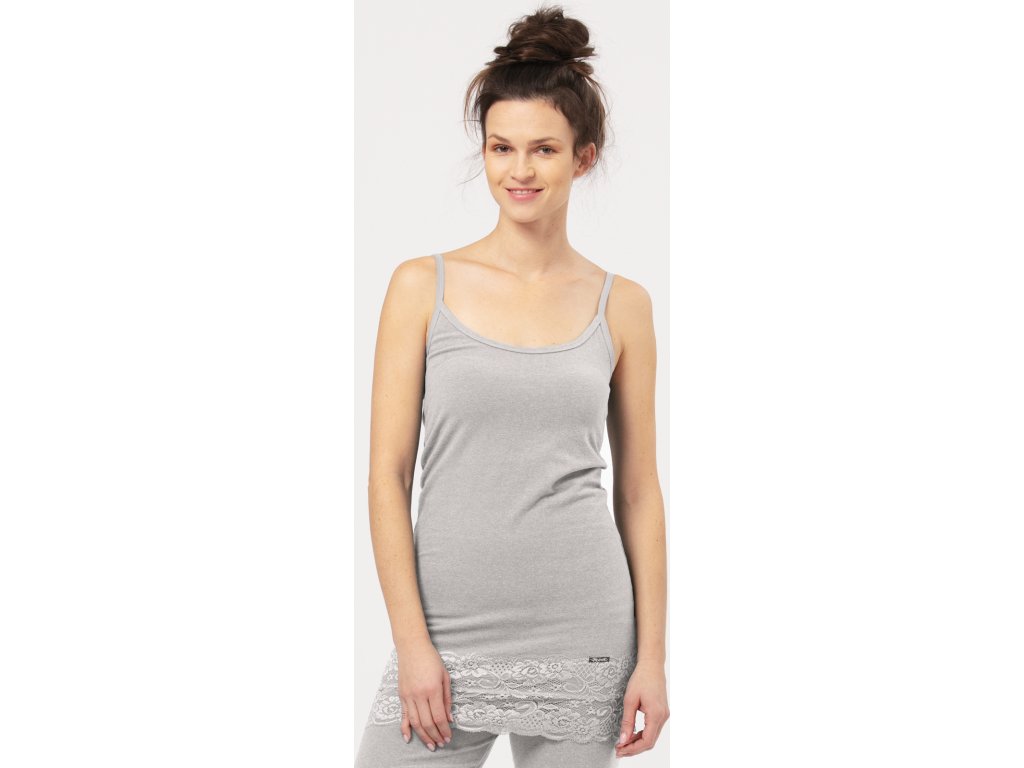 Dámské dlouhé termo triko na ramínka, vyrobené z vysoce kvalitní bavlny. Nepropouští chlad dovnitř, perfektně drží teplo. Spodní díl trička zdobený krajkou. Baleno v krabičce.