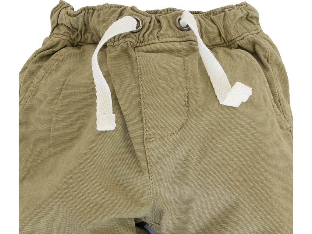 Kojenecké kalhoty bavlněné, v pase do gumy s regulační šnůrkou. Dvě kapsy na boku, imitace kapes v zadní části.