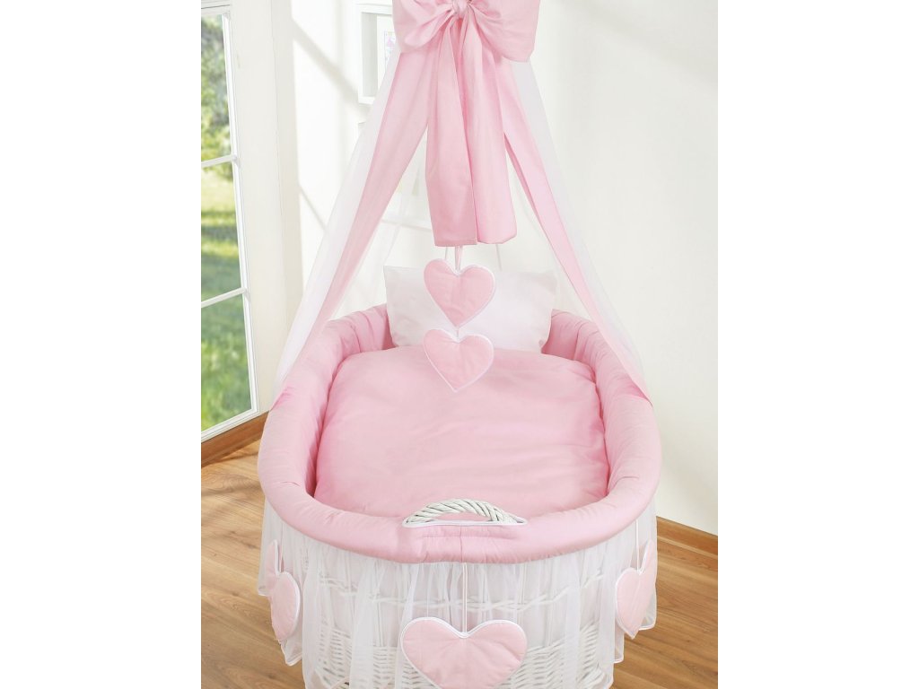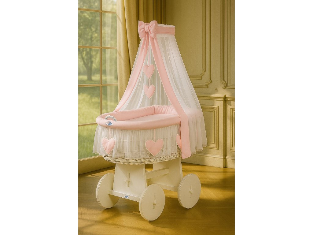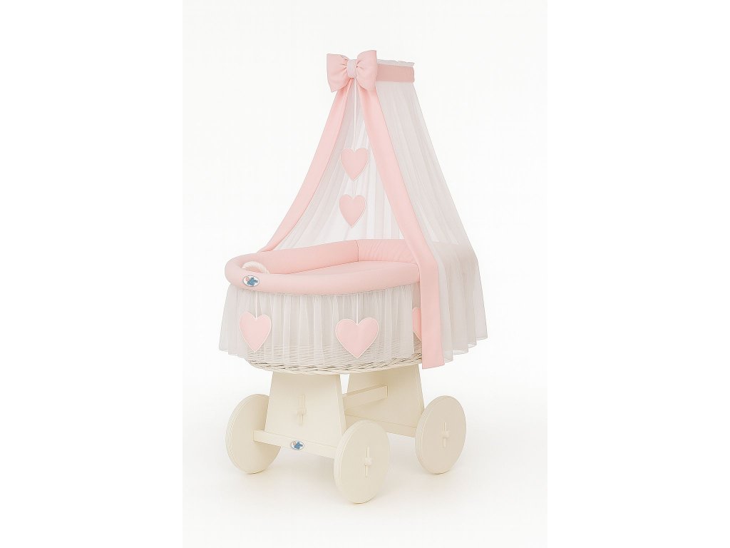 - Trojvrstvá podšívka košíku z měkké netkané textilie, zakončená volánkem kolem košíku se srdíčky, odnímatelná pro praní