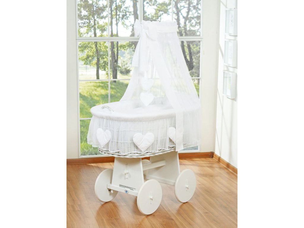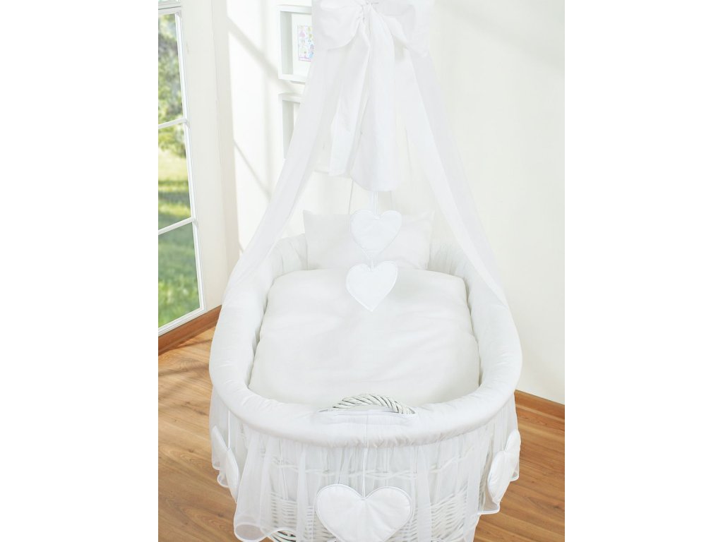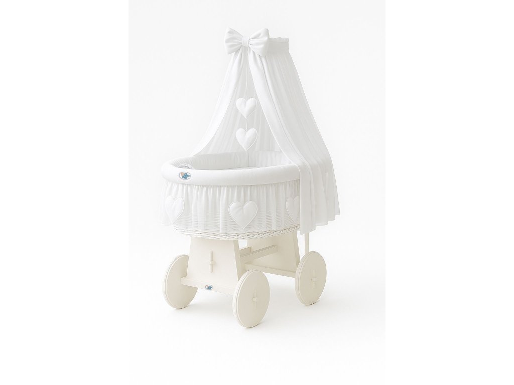 - Trojvrstvá podšívka košíku z měkké netkané textilie, zakončená volánkem kolem košíku se srdíčky, odnímatelná pro praní