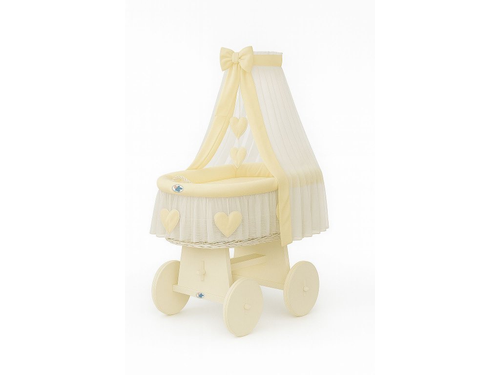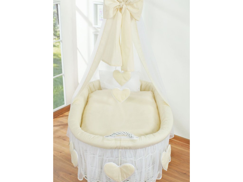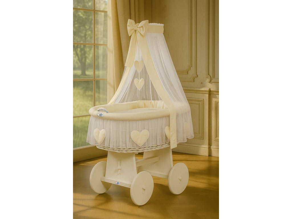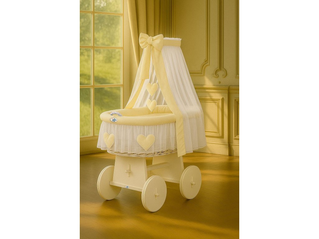 - Trojvrstvá podšívka košíku z měkké netkané textilie, zakončená volánkem kolem košíku se srdíčky, odnímatelná pro praní
