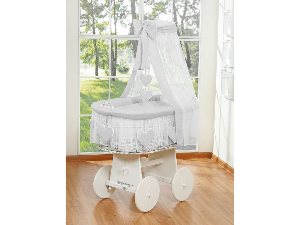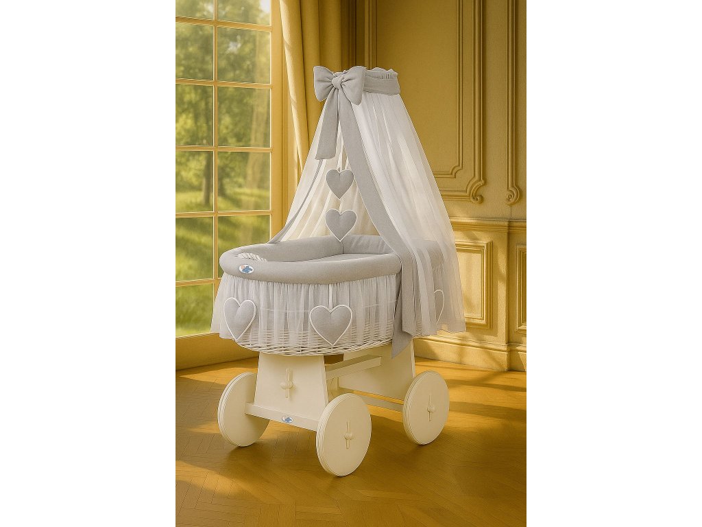 - Trojvrstvá podšívka košíku z měkké netkané textilie, zakončená volánkem kolem košíku se srdíčky, odnímatelná pro praní