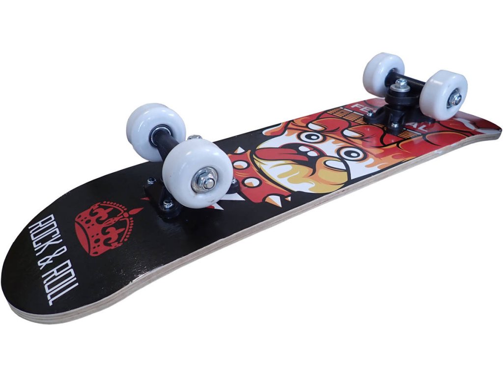 Ideální pro malé děti. Tento skateboard s dřevěnou deskou poskytuje bezpečnou a zábavnou platformu pro základní skateboarding. S atraktivním designem s motivem Rock &Roll je tento model oblíbený mezi dětmi, které mají rády divočinu.