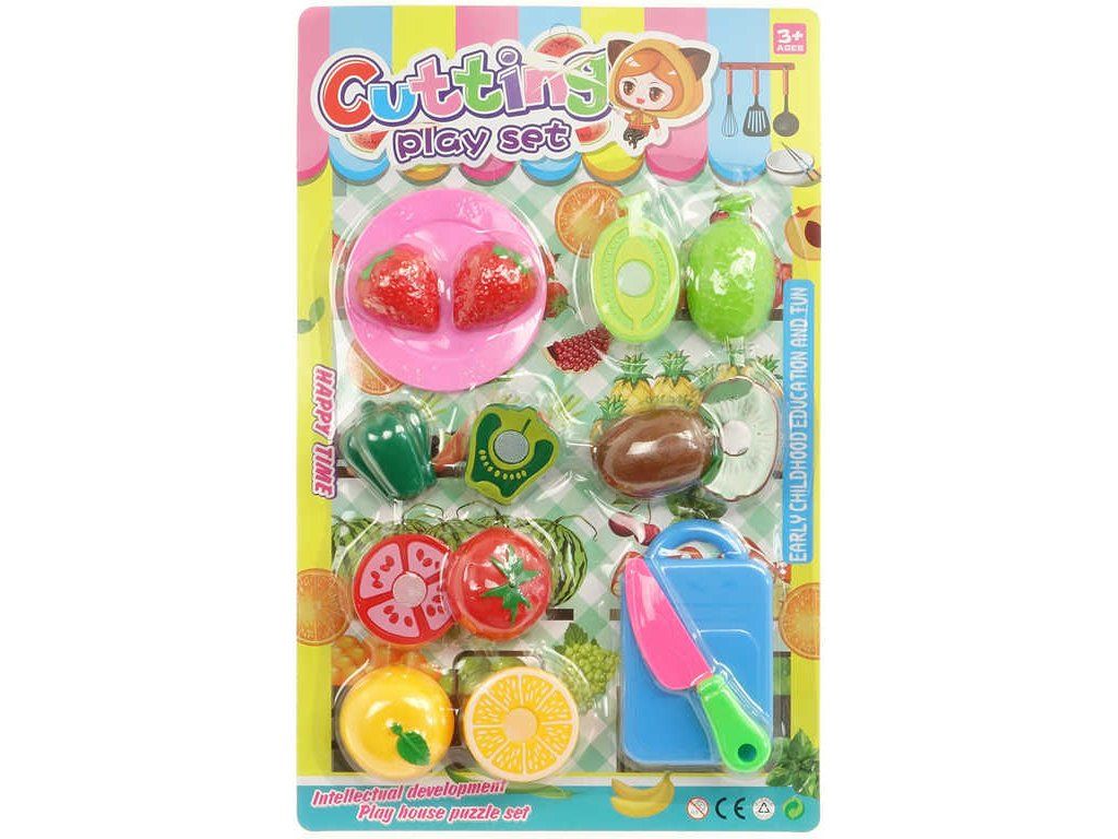 Obsah balení: nůž, prkýnko, talířek, paprika, rajče, citrón, kiwi, jahoda, chlebovník