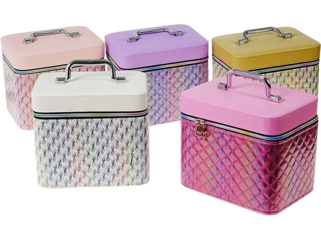 Kufřík dětský kosmetický vel. M se zrcátkem lesklý na zip 5 barev