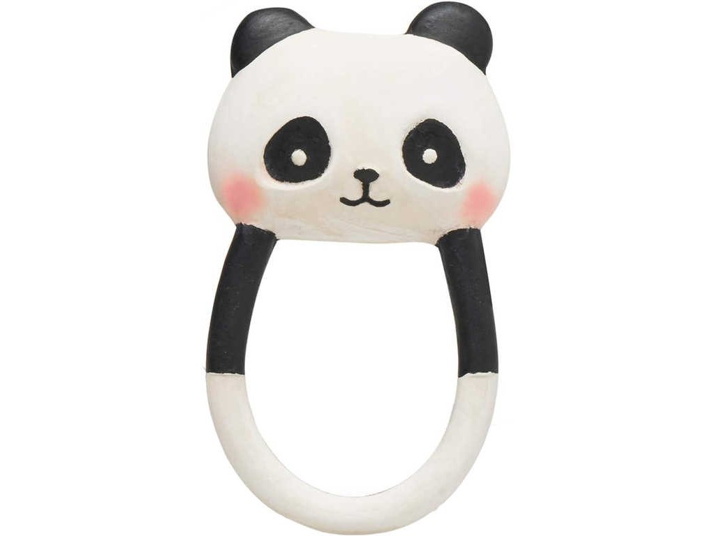 Medvídek panda - krásné chrastítko ideální jako první hračka pro novorozence a také pro předčasně narozené děti. Je lehké a snadno se drží. Jeho tloušťka a tvar upřednostňují uchopení, jako když dítě uchopí prst rodičů, a poskytuje tak pocit ochrany a bezpečí od prvních dnů života dítěte. Obsahuje výstupky pro stimulaci ústní dutiny a zklidnění dásní před prořezáváním zoubků a během něj. Jeho kontrastní barvy usnadňují pozornost a vizuální fixaci, což je nezbytné pro vývoj zraku miminek. Je to zcela vodotěsné kousátko, lze ho ponořit do vody bez rizika, že se do něj dostane voda, a udržuje se tak bez plísní a bakterií. Ručně vyrobené a ručně malované, vyrobené z přírodního kaučuku a přírodních pigmentů, zcela biologicky odbouratelné a udržitelné.