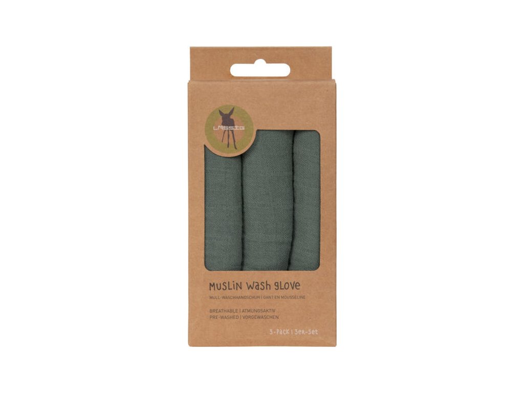 Lässig BABIES Muslin Wash Glove Set 3 pcs petrol green