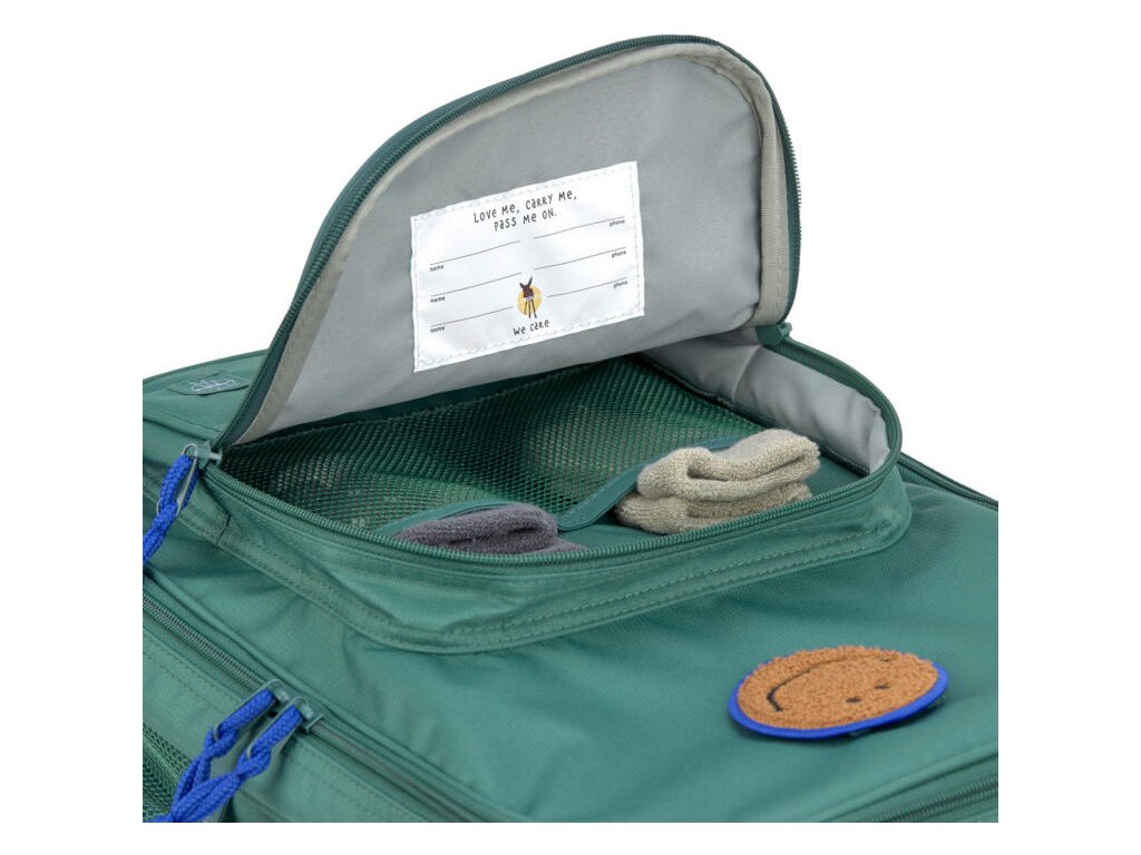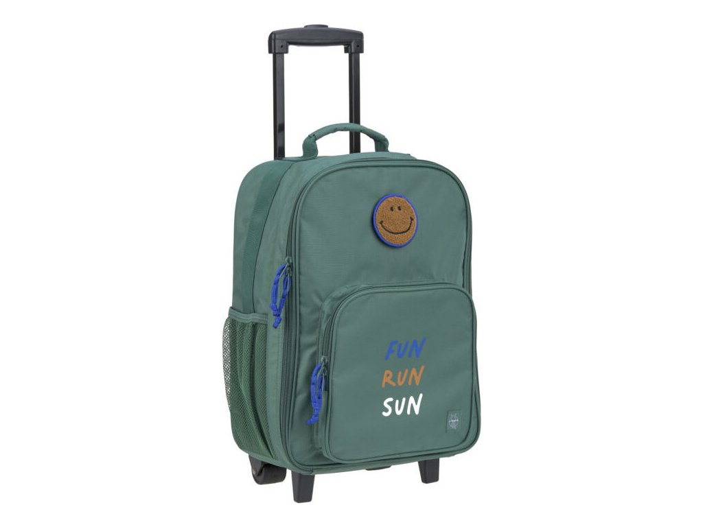 Německá značka LÄSSIG je lídrem v prodeji doplňků pro maminky a děti v západní Evropě. Jejich výrobky se vyznačují velmi vysokou úrovní zpracování a také praktičností, díky které si výrobky této značky oblíbili zákazníci ve více než padesáti zemích světa. Samostatnou kapitolou jsou pak materiály, které se vyznačují nejen špičkovou kvalitou a odolností, ale také ekologičností a napomáhají k dosažení nadčasového designu. Společnost Lässig GmbH je častým sběratelem významných ocenění. Výsledky svého úspěšného působení si však společnost nenechává jen pro sebe a podporuje celou řadu charitativních a ekologických projektů. elegantní a kvalitní dětský kufr velký vnitřní prostor kolečka pro snazší převoz zavazadla obrázek se smajlíkem na přední straně kufru, který je možné přichytit pomocí patentky stojky zajistí, že se látková část kufru neušpiní při postavení kufru teleskopická rukojeť pro převážení kufru je nastavitelná pomocí tlačítka do 3 výškových úrovní boční a horní úchyt pro přenášení s příjemným polstrováním čelní kapsa s uzavíráním na zip a dalším vnitřním dělením boční síťovaná kapsička vnitřní síťované kapsy pružné popruhy pro zafixování obsahu součástí je také látková taška na boty ozdobné šňůrky na konci zipů roztomilý nápis na přední kapse materiál odpuzující vodu jmenovka bez PFC neobsahuje žádné zvířecí složky rozměry: 33 x 22 x 47 cm materiál: 100% recyklovaný polyester hmotnost: 1736 g objem: 22 l Lässig GmbH Im Riemen 32 64832 Babenhausen Germany service@laessig-gmbh.de