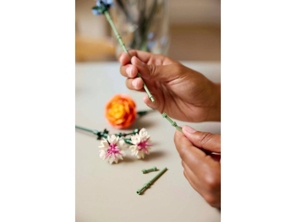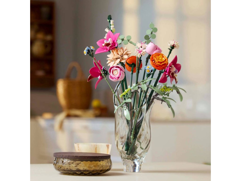 Rozvíjejte kreativitu se stavebnicí Krásná kytice růžových květin pro dospělé. Tato stavebnice květinové dekorace LEGO se pyšní řadou autentických květů s krásnými barvami, které nikdy neuvadnou, a poslouží jako nádherný dárek pro ženy, muže a milovníky přírody. Začínající květináři si oddechnou při stavění kytice z 15 květin LEGO, včetně sedmikrásek, chrp, eukalyptu, bezových květů, růží, pryskyřníku, orchidejí Cymbidium, růžové jiřiny a zvonku. Stonek každého květu je nastavitelný, takže kytici si můžete naaranžovat podle libosti a vystavit si ji doma nebo v kanceláři. Květiny můžete naaranžovat společně s dalšími kyticemi LEGO (prodávají se samostatně), a vytvořit tak velký, unikátní výstavní kousek. Tyto přizpůsobitelné květiny LEGO poslouží jako milý dárek ke Dni matek, k Valentýnu nebo ke kolaudaci a vaši blízcí si jich budou navždy vážit.