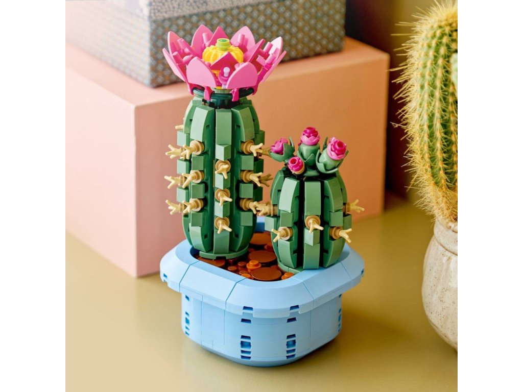 Potěšte malé milovníky rostlin stavebnicí Kvetoucí kaktus pro děti od 9 let. Holky i kluci si při stavění tohoto detailního modelu kaktusu užijí spoustu zábavy a pak si jej vystaví jako parádní dekoraci. Dětská kreativita bude při stavění dvojice kaktusů přímo kvést. Větší kaktus LEGO má plně rozkvetlý růžový květ se žlutým středem a menší kaktus LEGO má růžová poupata v různých fázích růstu. Kaktusy mají autentický odstín zelené barvy a jsou zasazeny do pastelově modrého květináče, aby si je děti mohly po sestavení snadno vystavit jako dekoraci v pokojíčku nebo domova.