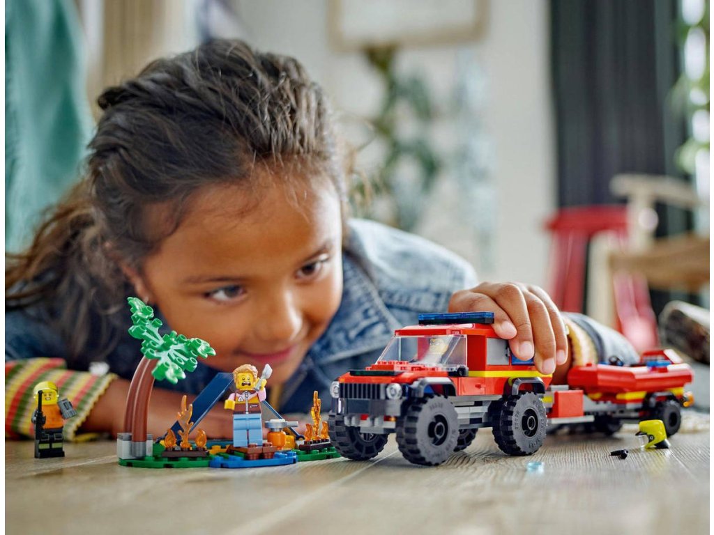 Stavebnice LEGO City Fire přináší hračky plné úžasných funkcí pro neomezené hraní na zemi, ve vzduchu ina vodě. Děti mohou tuto stavebnici s hasičským vozem 4x4 a záchranným člunem přidat k ostatním stavebnicím z řady Lego City (prodávané samostatně) a užívat si ještě úžasnější dobrodružství!