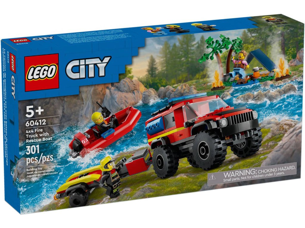 LEGO 60412 - Hasičský vůz 4x4 a záchranný člun z produktové řady LEGO CITY - Dětské plastové kostky v krabici.