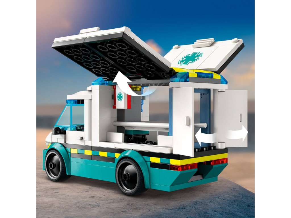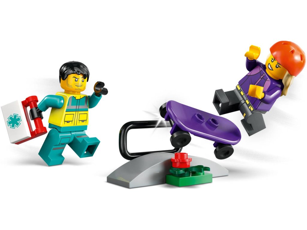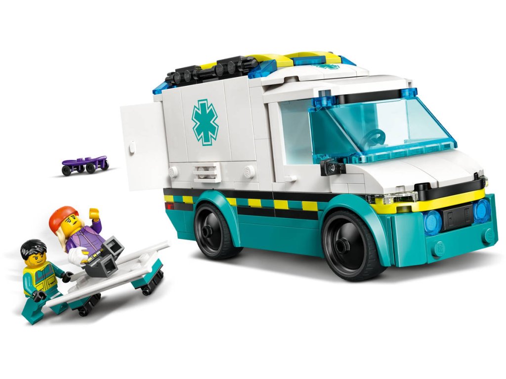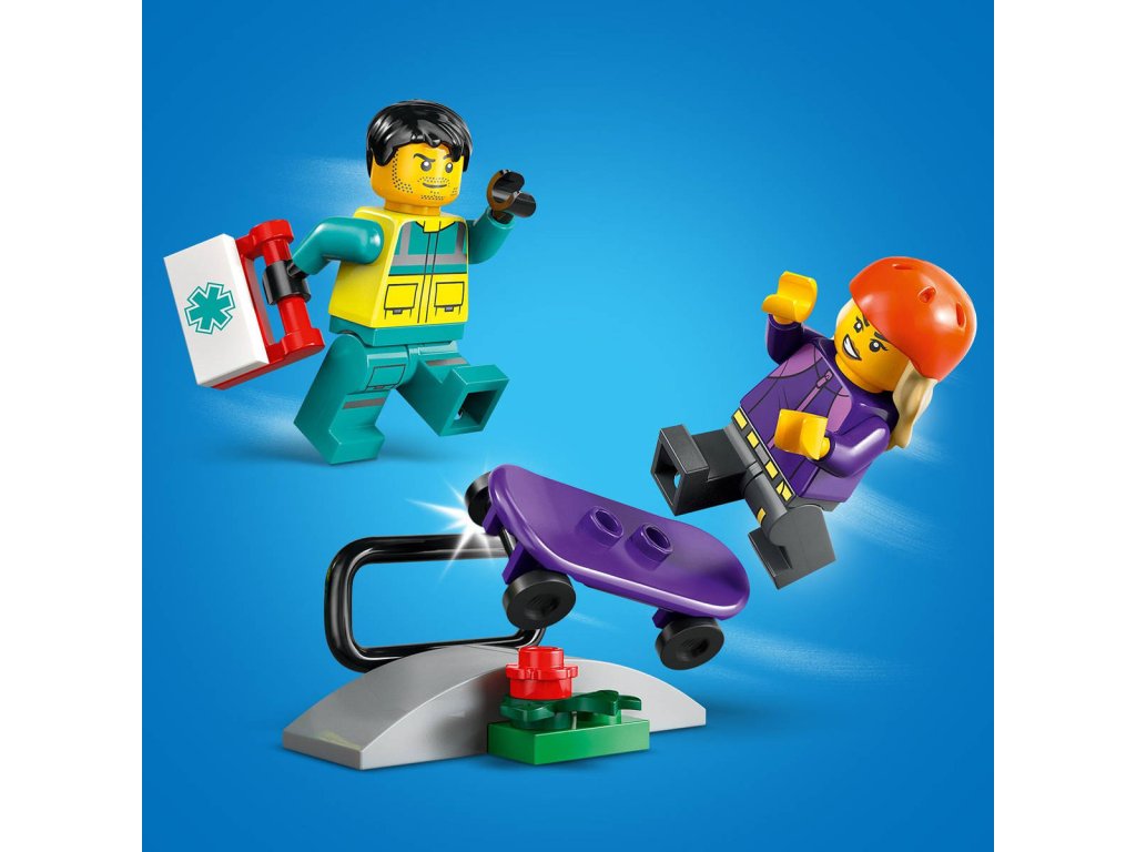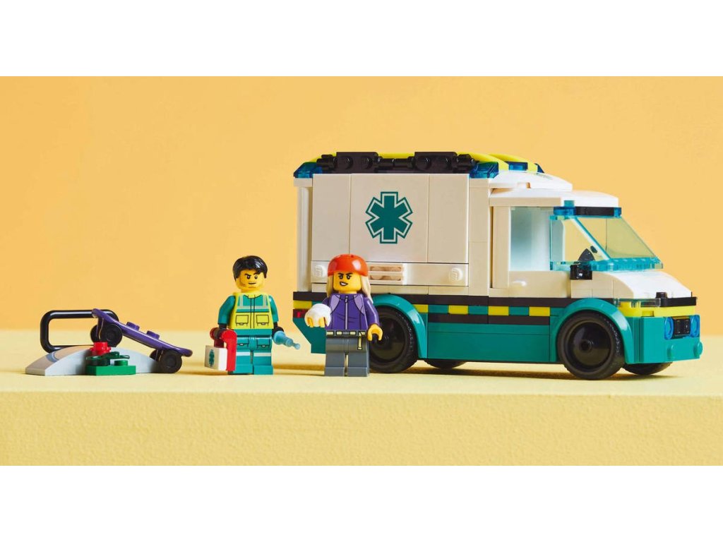 Děti od 5 let si užijí akční záchranné mise se stavebnicí Sanitka. Malí záchranáři sklopí boční panely a otevřou zadní dveře, aby se snadno dostaly k nosítkům a zdravotnickému vybavení, včetně injekční stříkačky, obvazu a zdravotnické brašně. Součástí stavebnice je také skateboard a skate rampa a minifigurka skateboardisty a záchranářky pro zábavné hraní a vyprávění příběhů. Tištěný návod na stavění tohoto modelu LEGO City najdete v krabici. V aplikaci LEGO Builder najdete také 3D návod, který dětem umožní prozkoumávat a ukládat si virtuální stavebnice, sledovat postup stavění a přibližovat, otáčet a prohlížet si modely ze všech úhlů, zatímco na nich pracují. Stavebnice LEGO City Skvělá vozidla přináší hračky plné úžasných funkcí pro neomezené hraní na zemi, ve vzduchu i na vodě. Děti můžou tuto stavebnici Sanitky přidat k dalším stavebnicím z řady LEGO City (prodávají se samostatně) a užívat si ještě úžasnější dobrodružství!