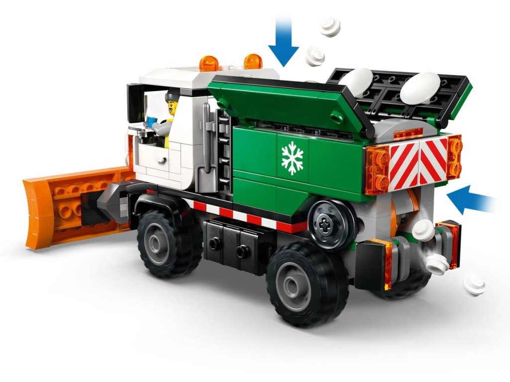 Potěšte malé hrdiny stavebnicí Sněžný pluh pro děti od 6 let. Děti můžou naklánět, zvedat a spouštět přední pluh, nakládat dílky LEGO v podobě soli do zásobníku a tlačit vozidlo, aby se aktivovala funkce sypání soli. Tento nákladní vůz má také dvoumístnou kabinu, kterou lze odklopit pro přístup k motoru, boční úložné boxy na dílky soli a spony pro uchycení nářadí. Přidejte minifigurku řidiče a můžete se pustit do napínavých dobrodružství plných odklízení sněhu.
