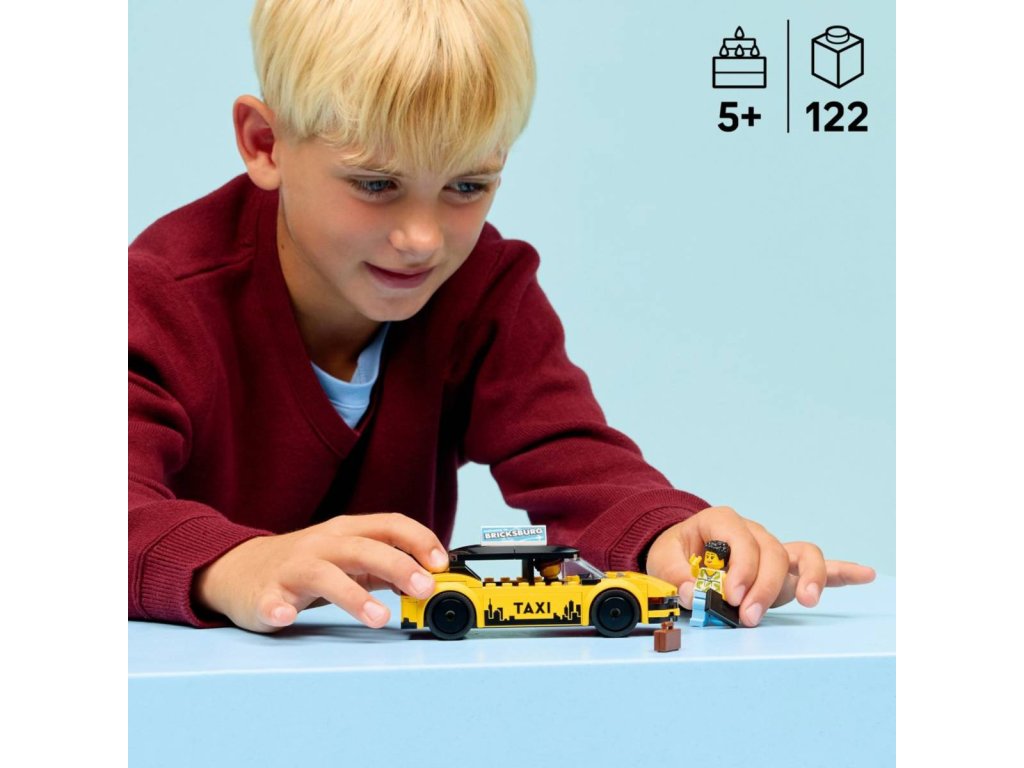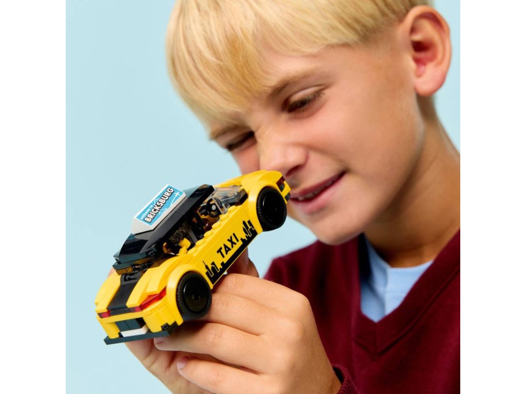 Děti od 5 let, které milují autíčka a stavebnice, si se stavebnicí Žlutý taxík užijí dvojnásobnou porci zábavy. Tato zábavná stavebnice obsahuje moderní elektrický žlutý taxík s otevíracím kufrem se zavazadly a kapotu, kterou lze zvednout a odhalit tak model elektrického motoru. Součástí modelu autíčka jsou potištěné samolepky včetně GPS obrazovky, loga taxi, reklamy na střeše a baterie. Děti můžou navíc odejmout střechu a vložit dovnitř minifigurky taxikáře a turistů, se kterými si užijí hraní a vymýšlení příběhů.
