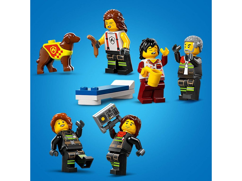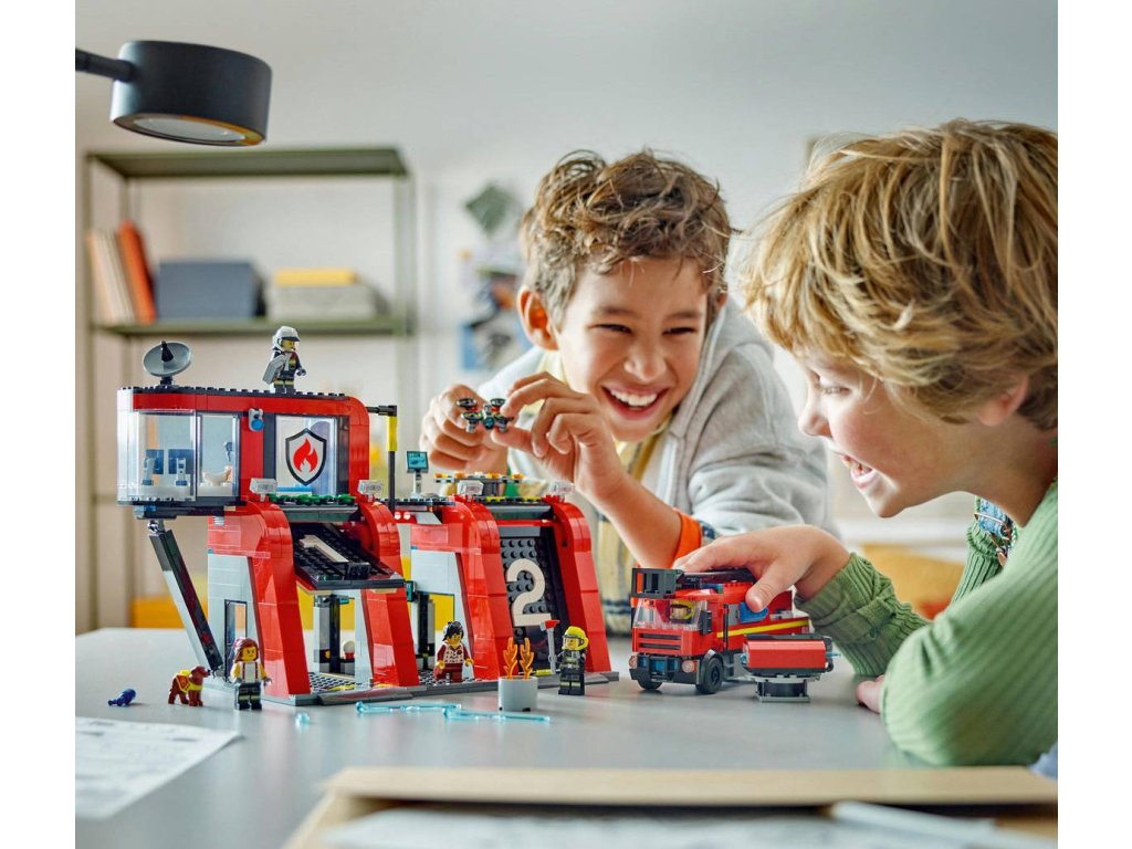 Povzbuďte dětskou představivost herní stavebnicí Hasičská stanice s hasičským vzorem pro děti od 6 let. Součástí stanice je moderní řídicí centrum, kuchyňka a místy pro spaní nad prostory s vybavením, dále 2 garáže s vysokými sklápěcími dveřmi. Stavebnice obsahuje také dron a hasičskou stříkačku s modulárním žebříkem a přídavnými hasicími přístroji. Mobilizujte posádku čítající 5 minifigurek a hasičského psa a vydejte se vstříc hodinám akcí nabité hry na hasiče. Děti mohou tutostavebnici používat v kombinaci s ostatními z řady Lego City (prodávané samostatně) pro ještě úžasnější dobrodružství!