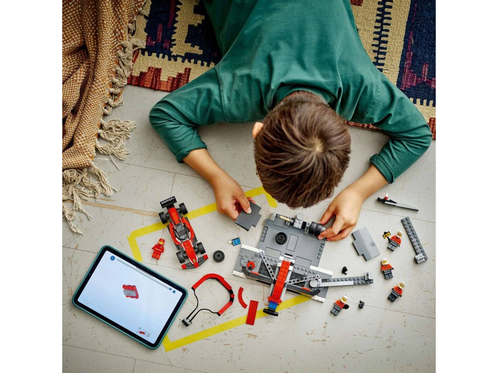 Uspořádejte napínavé závody v dětském pokojíčku se stavebnicí Zastávka v boxech F1 a personál s vozem Ferrari pro děti od 6 let. V této stavebnici děti najdou vše, co potřebují pro bleskurychlé zastávky v boxech, včetně nových hladkých pneumatik, utahováků na kola a personálu, který se po stisknutí spínače přesune do pozice pro ultrarychlou výměnu pneumatik. Stavebnice je přímo stvořená pro malé milovníky závodění a součástí je model závodního auta Formule 1 Ferrari a minifigurky řidiče a 4 členů personálu v boxech. Tento model LEGO F1 je dodáván s podrobným tištěným návodem na stavění. Digitální návod najdete v aplikaci LEGO Builder, ve které si děti můžou přibližovat a otáčet modely ve 3D, sledovat svůj postup při stavění a prozkoumávat a ukládat další stavebnice. Postavte si stavebnici s vozidly F1 od LEGO City, která představuje perfektní dárek k Vánocům nebo narozeninám pro malé fanoušky napínavého závodění. Objevte dynamickou řadu stavebnic LEGO s tematikou F1 (prodávají se samostatně) pro děti i dospělé.