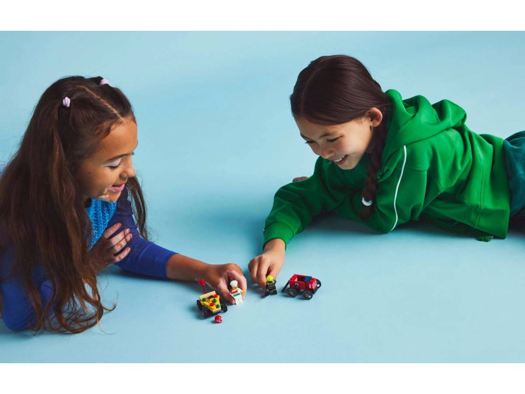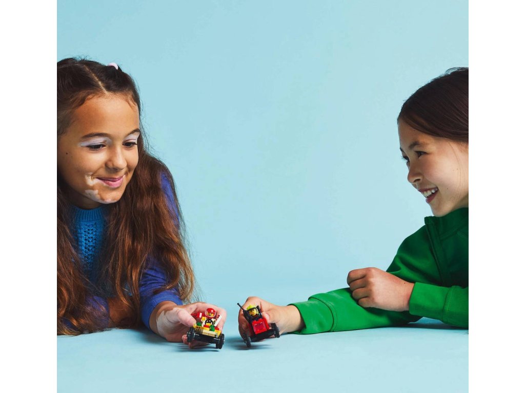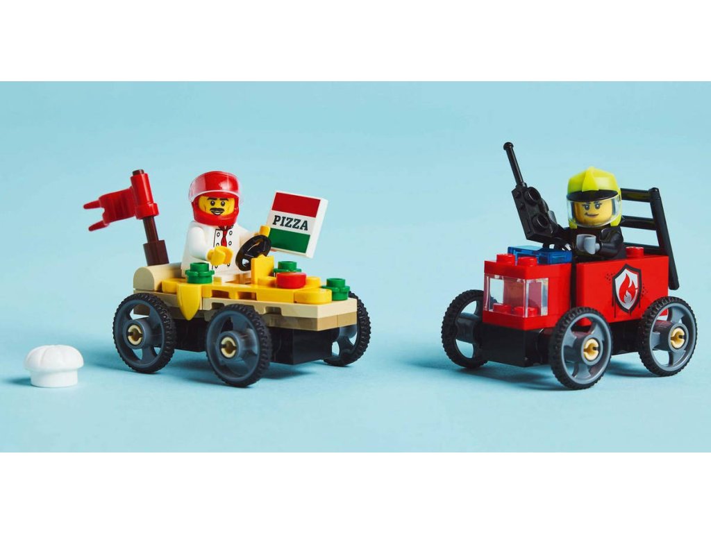 Darujte svému malému milovníkovi závodů od 5 let stavebnici Závodní balíček: Rozvoz pizzy vs. hasičské auto. Tato zábavná závodní stavebnice obsahuje 2 závodní minikáry a 2 minifigurky. Děti proti sobě postaví šéfkuchaře v minikáře v podobě horkého klínku pizzy a hasiče v minikáře v podobě červeného hasičského auta. Kdo vyhraje? Sedněte za volant a vydejte se na akční městské závody! Tento model závodních vozů LEGO je dodáván s podrobným tištěným návodem na stavění. Děti se můžou těšit na zábavné stavitelské dobrodružství s aplikací LEGO Builder. V ní si lze přibližovat a otáčet modely ve 3D, ukládat stavebnice, sledovat postup a prohlížet další stavebnice.