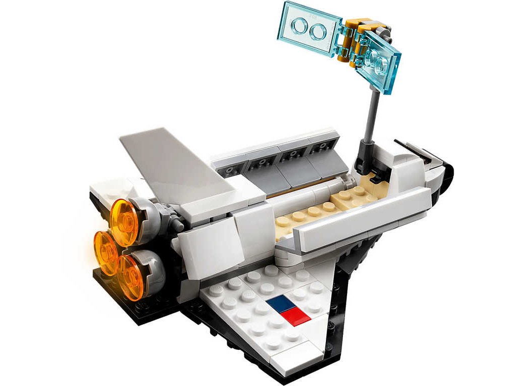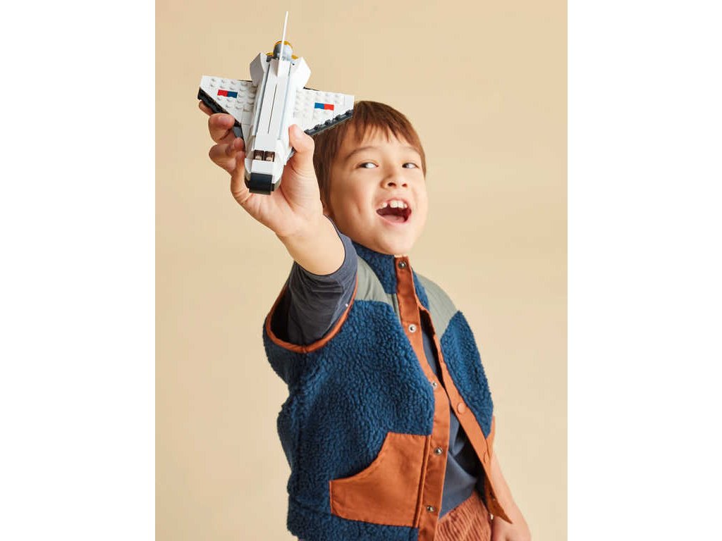Vesmírní dobrodruzi od 6 let si s raketoplánem užijí vzrušující dobrodružství. Mohou se těšit na model raketoplánu s otevíracím poklopem, který ukrývá vysouvací satelit. Satelit můžete při nápaditých hrách také odpojit. V této stavebnici 3 v 1 čekají na milovníky vesmíru 3 různá stavitelská a herní dobrodružství. Mohou si postavit raketoplán a pak jej přestavět na pohyblivou figurku astronauta s jetpackem a vlajkou nebo na úžasnou vesmírnou loď. Stáhněte si aplikaci s návody LEGO Builder, která dětem umožní vychutnat si zcela novou porci zábavy při stavění díky funkcím přibližování a otáčení modelů ve 3D, ukládání stavebnic a sledování postupu.