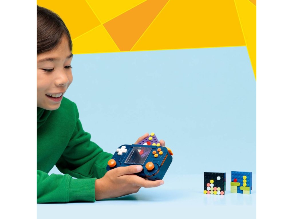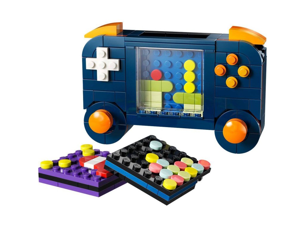 Děti a malí gameři od 8 let si zamilují stavění, hraní a vystavování stavebnice Retro herní konzole. Tato detailně propracovaná a zábavná dekorace do pokojíčku milovníka videoher nabízí 3 různé možnosti stavění ze stejné sady kostek. Kluci a holky si můžou postavit přenosnou herní konzoli se 2 pohyblivými joysticky a 2 pohyblivými tlačítky a 3 herní moduly, které lze vložit do konzole. Tu pak mohou přestavit na stolní mini počítač klávesnicí a monitorem, diskem, který lze vložit dovnitř, a myší, nebo na arkádový herní automat.