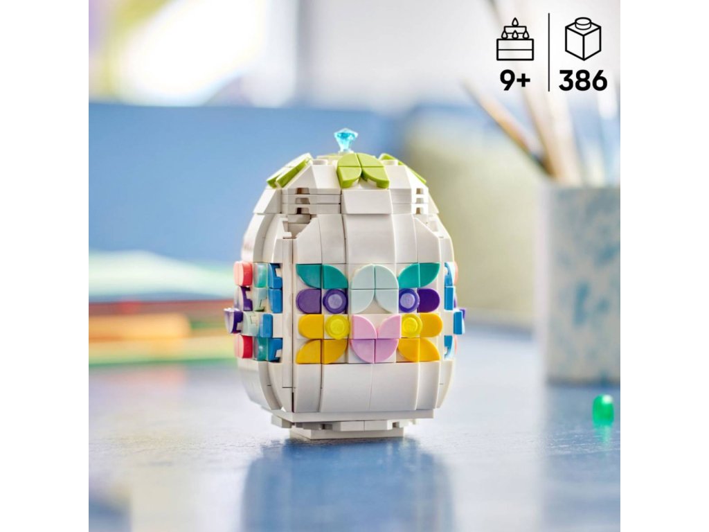 Děti od 9 let popustí uzdu fantazii a oslaví jaro a Velikonoce s přizpůsobitelnou dárkovou stavebnicí Dekorativní velikonoční vajíčko. Pusťte se do „malování“ vajíček“ ve stylu LEGO s kamarády a rodinou. Postavte si vlastní velikonoční vajíčko a ozdobte ho barevnými dílky LEGO, včetně zlatého srdce a malého drahokamu. Vajíčko má plochou základnu, která umožňuje snadné vystavení, a otevírací horní část, kterou lze odejmout, abyste dovnitř mohli uložit přebytečné dílky - nebo možná další velikonoční překvapení.
