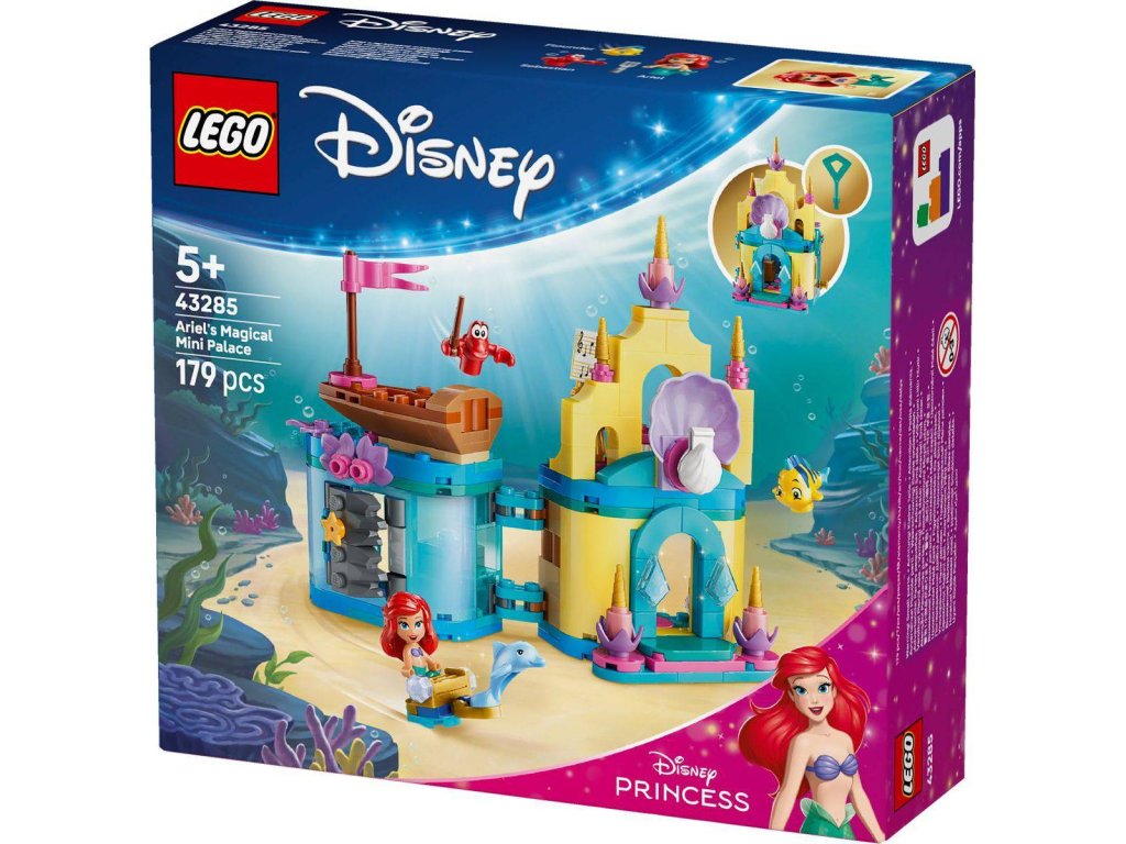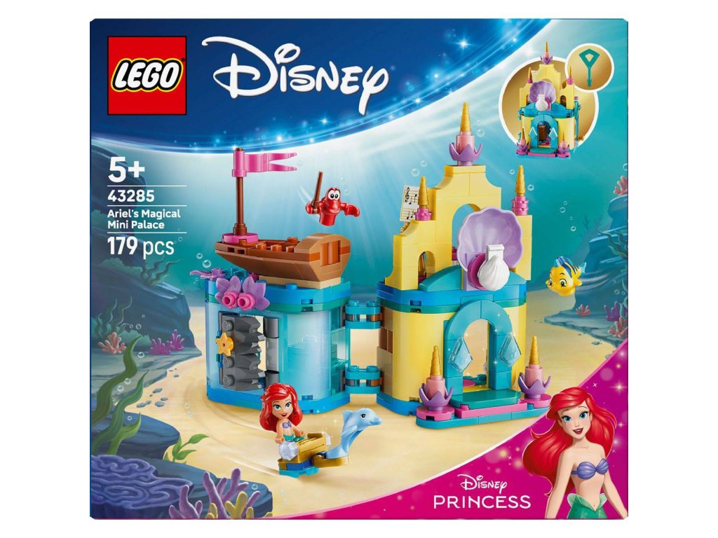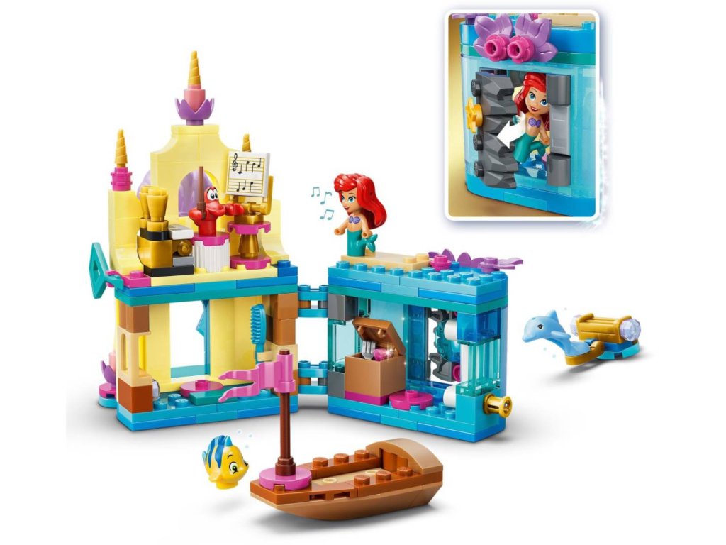 S fantastickou stavebnicí Ariel a její kouzelný miniaturní palác pro fanoušky Disney filmu Malá mořská víla od 5 let děti objeví svou kreativní stránku. Tato stavebnice v mikroměřítku obsahuje celý svět uvnitř i vně. Stavebnice LEGO pro kluky i holky obsahuje 3 postavy LEGO ? Disney: Ariel, Šupinku a Sebastiana, miniaturní palác s jeskyní, kterou lze zavřít a zamknout klíčem, loďku a spoustu dalších prvků. Přenosný model miniaturního paláce je jako stvořený pro zábavu doma i na cestách.