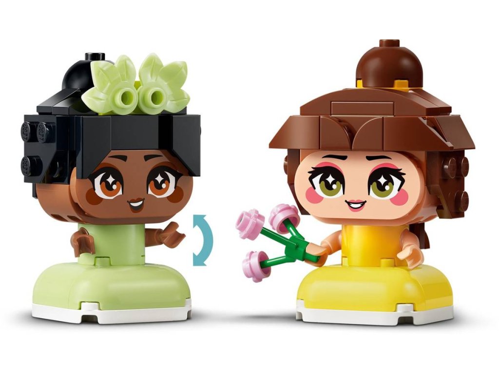Potěšte malé milovníky princezen ze světa Disney od 5 let se stavebnicí Mini Bella a Tiana s hradem. Mini verze filmových postaviček Belly a Tiany mají doplňky ve formě knížky a vařečky, které malé stavitele podněcují k vymýšlení příběhů. Každá z postav má pohyblivé ruce a může držet svůj doplněk. Stavebnice hradu má 3 patra a obsahuje barevně sladěné prostory pro každou postavu ze sběratelské série. V prostřední věži najdete otáčecí desku, na které lze vystavit kteroukoli postavu ze série.
