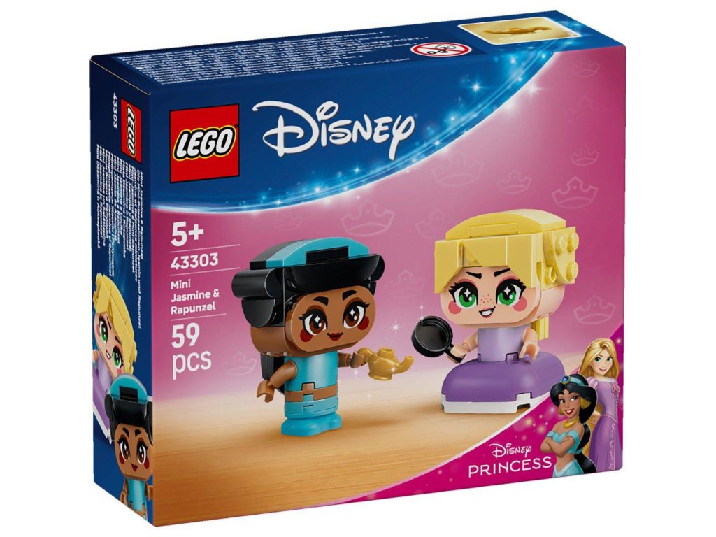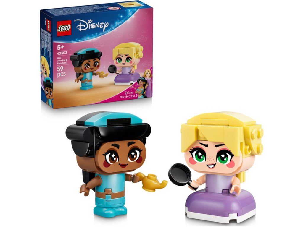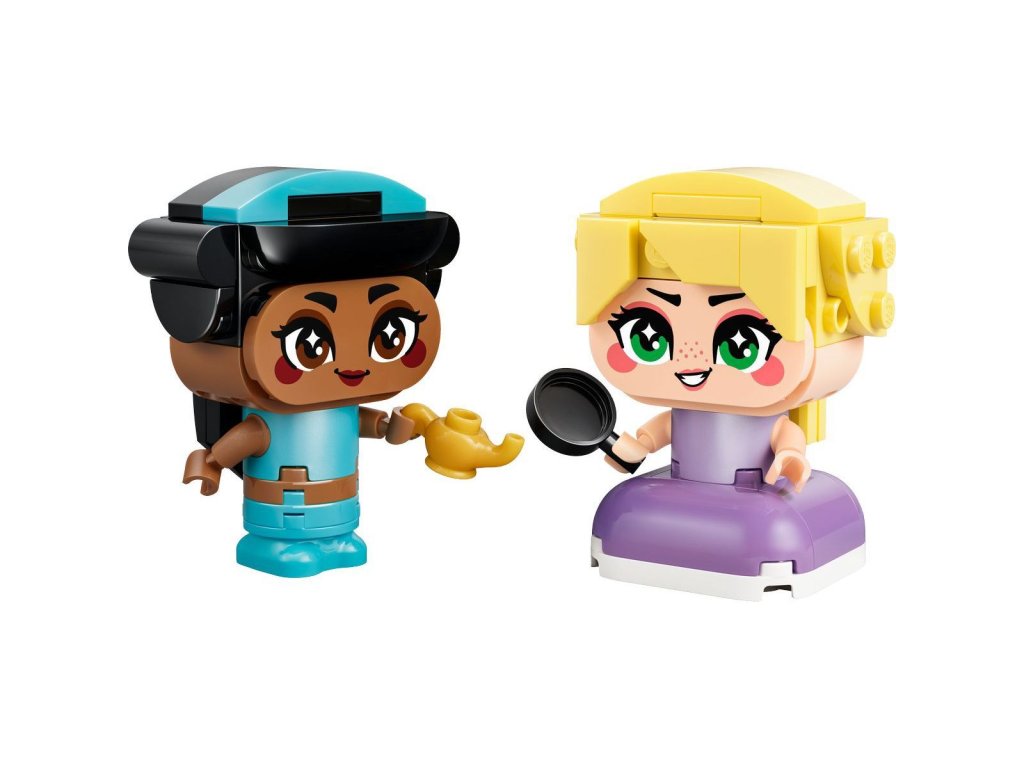 Potěšte děti od 5 let stavebnicí Mini Jasmína a Locika. Filmové postavy Jasmína a Locika s doplňky v podobě kouzelné lampy a pánve inspirují děti k vymýšlení příběhů a živé hře. Každá z princezen má pohyblivé ruce a může držet svůj doplněk. Modely princezen se také skvěle se hodí na vystavení v pokojíčku a jsou součástí sběratelské série, která obsahuje další princezny Disney z kostek.