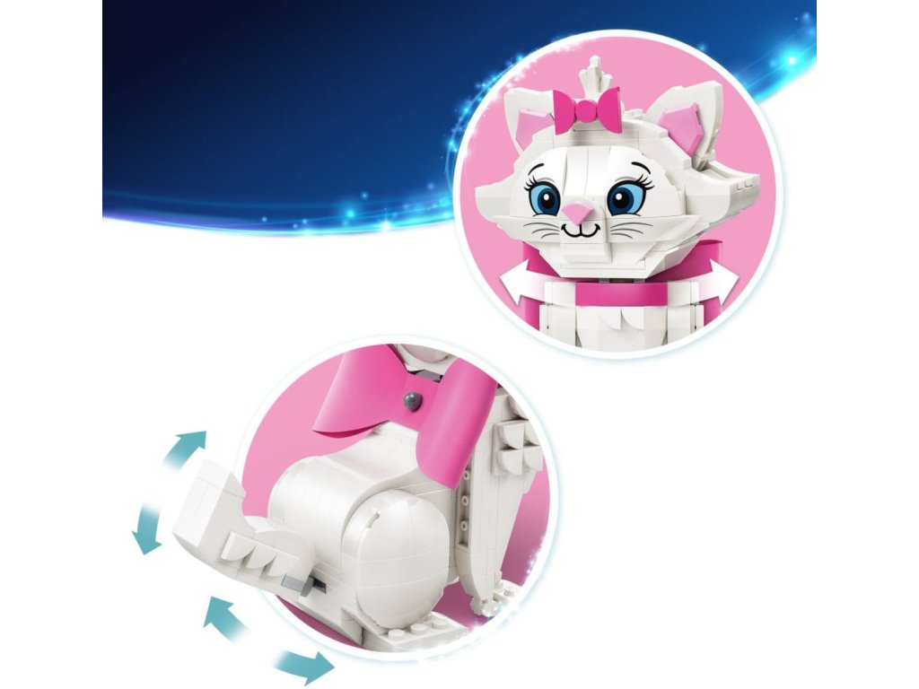 Překvapte fanoušky filmů Disney, děti a milovníky zvířat úžasnou stavebnicí Roztomilá Marie z filmu Aristokočky. Sestavte pohyblivý model kočky z kostek pro kluky a holky od 7 let, který inspiruje ke kreativnímu hraní a stejně tak se bude skvěle vyjímat jako výzdoba do pokojíčku. Stavebnice obsahuje také sestavitelné doplňky ve formě dárkové krabičky, myšky, kartáče, rybičky a růžové látkové mašličky, které podněcují vyprávění příběhů. Stavebnice poslouží jako skvělý dárek k narozeninám nebo Vánocům pro milovníky zvířat.