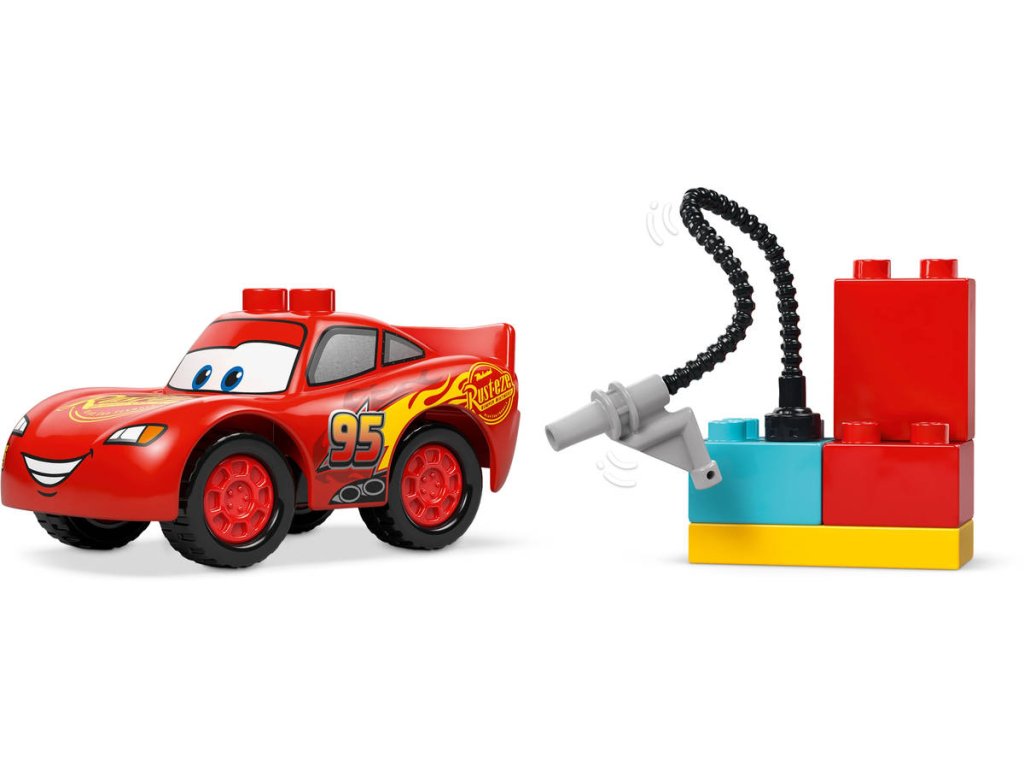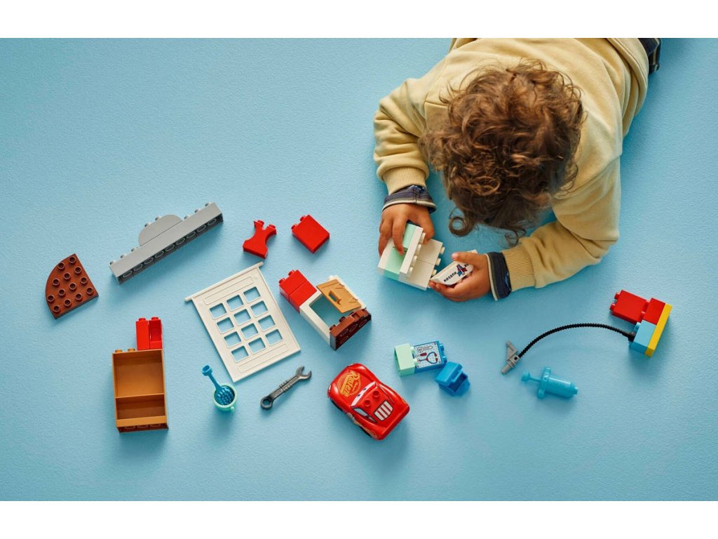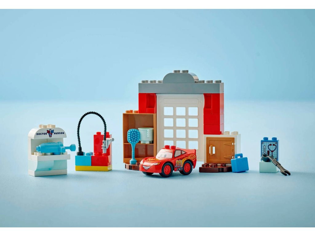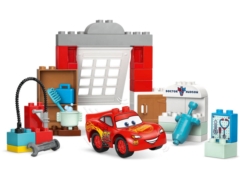 Malí stavitelé se se stavebnicí McQueen a návštěva v garáži doktora Hudsona naučí starat o své oblíbené závodní autíčko. S touto sadou se děti přenesou do světa filmu Auta od studia Disney a Pixar a naučí se o auto pečovat prostřednictvím kreativního hraní. Nápadité hraní začne, jakmile auto Blesk McQueen prosviští garážovými vraty v této stavebnici. Batolata si zamilují ježdění s autem do garáže a ven skrz kývající se dveře. Zdokonalí své jemné motorické dovednosti používáním hasáku, otevíráním a zavíráním dveří skříňky a odepínáním hadice sestavitelné automyčky, aby umyly Bleska McQueena po velkém závodě.