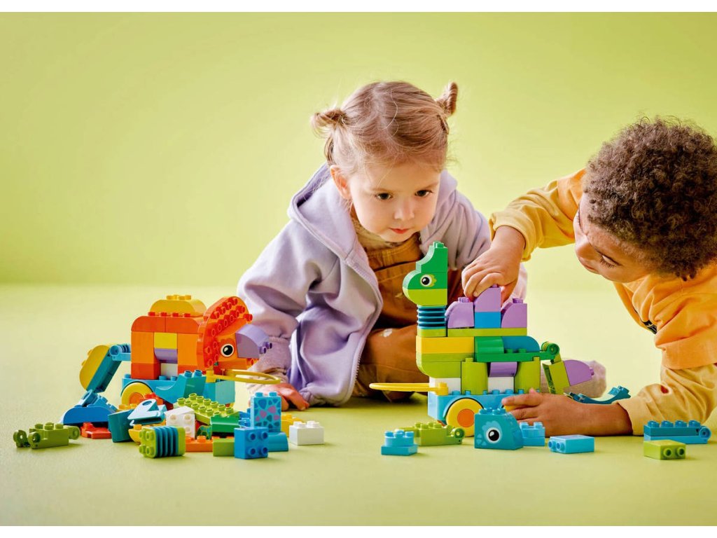 Dopřejte malým stavitelům pořádnou porci zábavy se stavebnicí 3 v 1: Dinosauři na kolečkách. Tato dinosauří stavebnice je plná tvořivých herních možností a součástí je řada barevných kostek, ze kterých lze vytvořit 3 páry kreativních modelů. 108 kostek a dílků v této stavebnici LEGO DUPLO se zvířátky lze sestavit 3 různými způsoby: Diplodocus a T-rex, triceratops a stegosaurus nebo pteranodon a parasaurolophus. Děti si můžou vytvořit ještě zábavnější figurky přidáním pohyblivého krku a ocasu, křídel nebo tlamy, kterou lze otvírat a zavírat. Dinosaury lze umístit na podložku s kolečky, takže stavebnice potěší všechny malé milovníky vozidel LEGO DUPLO. Tato stavebnice LEGO DUPLO 3 v 1 nabízí spoustu příležitostí k hravému učení. Model se skládá z kostek, se kterými se snadno manipuluje. Stavebnice dětem pomůže rozvíjet trpělivost, soustředění a představivost při nekonečném stavění a přestavování kreativních zvířátek.