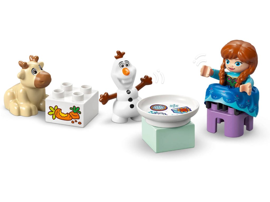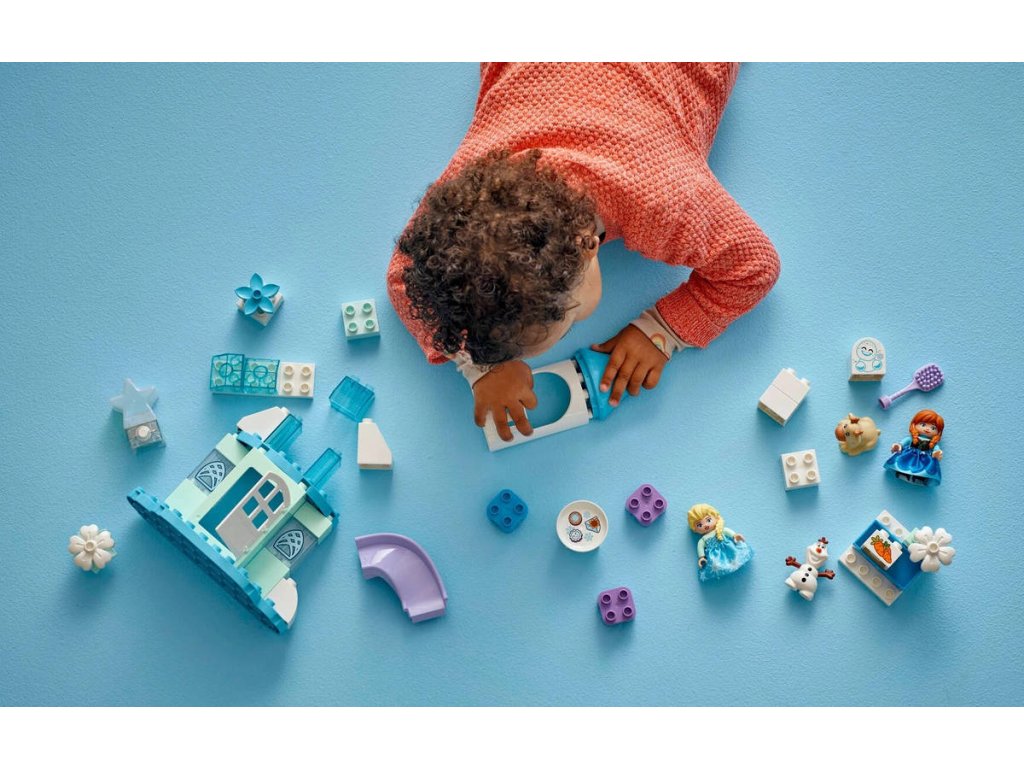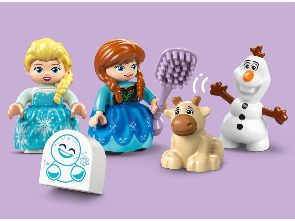 Ponořte se se svými ratolestmi do světa kreativního hraní se stavebnicí Ledové království: Anna a Elsa a oslava na hradě pro batolata. Součástí jsou postavy LEGO DUPLO - Disney Elsy, Anny, sněhuláčka Marshmallowa, malého Svena a Olafa, se kterými si děti užijí nekonečné možnosti hraní na život na hradě a péči o malého Svena. Při stavění modelu hradu si malé děti procvičí jemnou motoriku. Tato fantasy stavebnice obsahuje doplňky, které malé děti i dospělé inspirují k zábavnému hraní na péči o mládě soba, při kterém zapojí fantazii. Tato vzdělávací stavebnice pro malé děti se pyšní řadou detailů, které stimulují jejich smysly. Elsa a Anna mají oblečené látkové sukně, které jsou příjemné na dotek. Najdete tu i výklopné dveře, které mohou malé prstíky otevřít a prozkoumat tak interiér hradu z filmu Ledové království. Stavebnice obsahuje také barevnou světelnou kostku, která představuje polární záři.