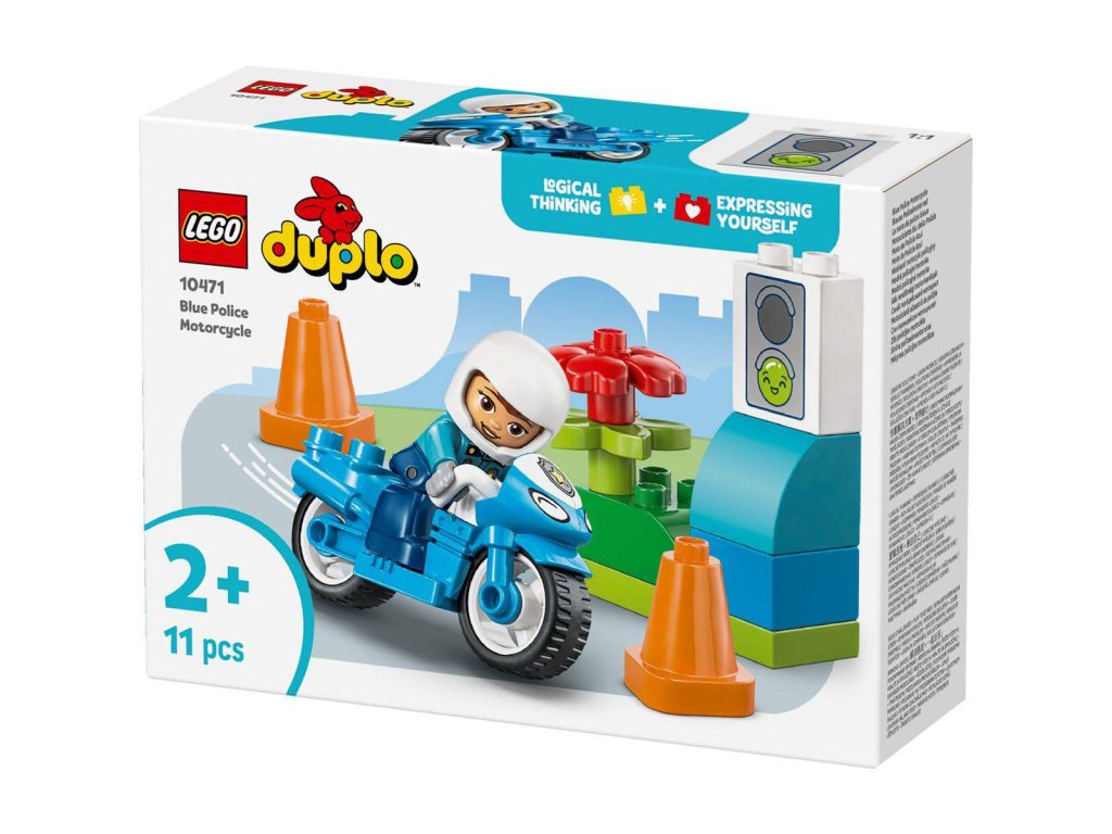 LEGO 10471 - Město: Modrá policejní motorka z produktové řady LEGO DUPLO. Kvalitní, dětské plastové kostky.