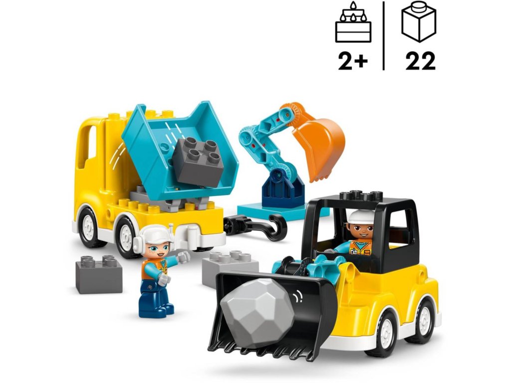 Nastartujte kreativitu svých ratolestí se stavebnicí Vozidla na stavbě 3 v 1, která představuje skvělý dárek pro děti od 2 let. Děti si užijí velkou porci zábavy při skládání a přestavování hned 6 různých variant vozidel. Z 22 kostek této stavebnice LEGO DUPLO lze sestavit hned 3 páry vozidel: nakladač s výklopnou lžící, který do sklápěče naloží kostky, bagr a odtahový vůz s otočným ramenem, nebo zvedák a druhý odtahový vůz s malým hákem pro zvedání kostek. Model podporujte malé stavitele, aby využívali svou kreativitu, schopnost řešit problémy, trpělivost a jemné motorické dovednosti k experimentování s různými řešeními při skládání nápaditých nákladních aut. Součástí balení jsou také 2 figurky stavebních dělníků, které batolata můžou použít k řízení a obsluze vozidel. Stavebnice LEGO DUPLO Město pomáhá malým dětem porozumět světu kolem nich, zatímco staví, objevují a hrají si.