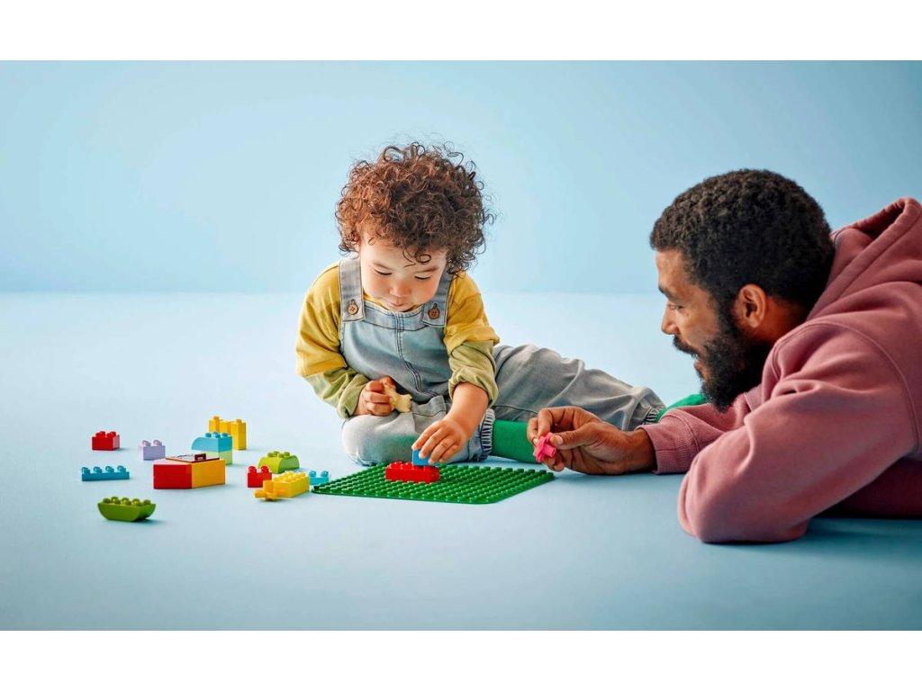 LEGO DUPLO Zelená podložka na stavění má plochu přes 38cm čtverečních, takže poskytuje ideální herní prostředí pro děti od 18 měsíců, které si na ní mohou stavět, hrát a vystavovat své kreativní výtvory.