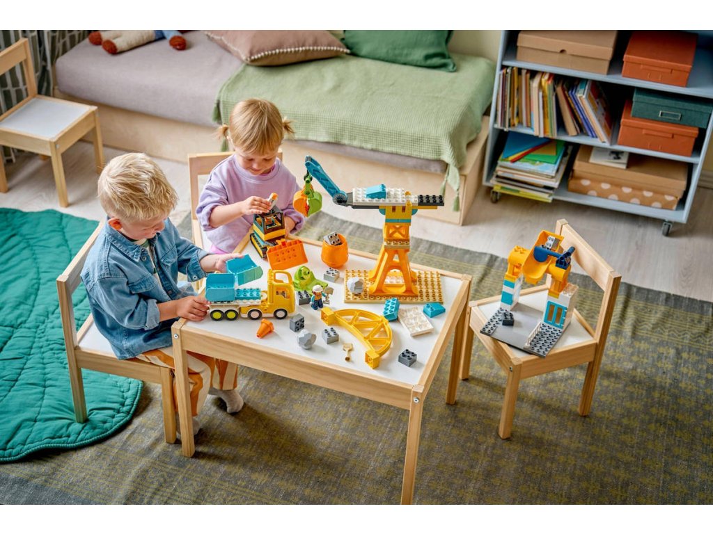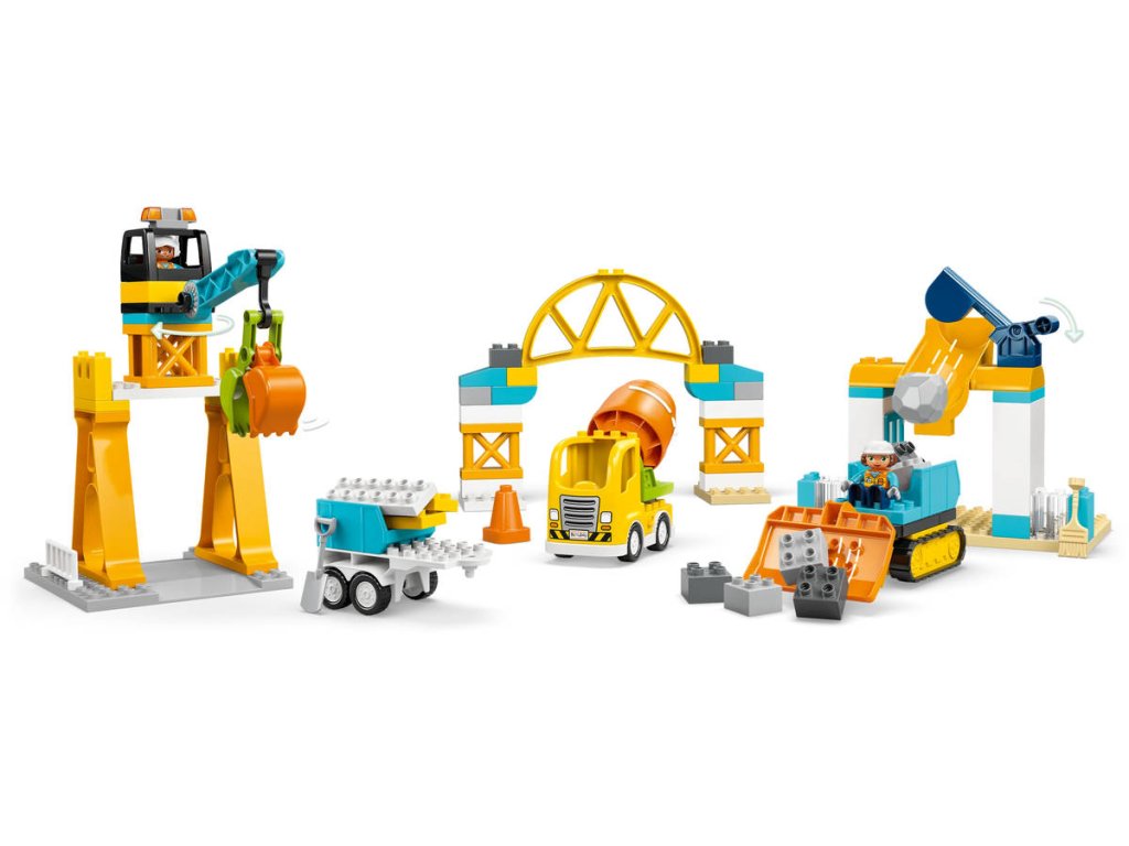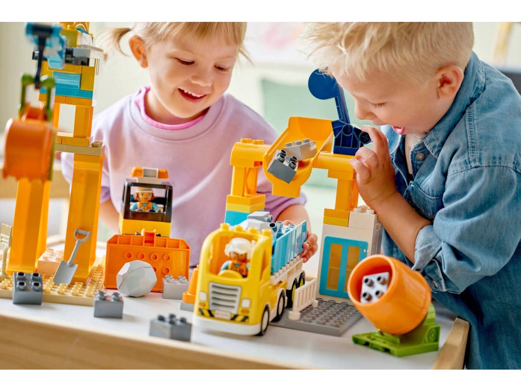 Představte malým stavitelům hračku Staveniště a vozidla 3 v 1, se kterou stavění nikdy nekončí! Stavitelé od 3 let si budou vtaženi do hry na rušném staveništi, kde si vyzkouší nakládání a vykládání materiálu, stejně jako zvedání a přemisťování kamení a kostek pomocí celé řady stavebních vozidel LEGO® DUPLO®. Děti si mohou postavit buldozer se zvedací lžicí, sklápěcí náklaďák, míchačku na beton s otočným bubnem a jeřáb s pohyblivým ramenem a otevíracím drapákem. Z kostek lze také sestavit vysoký jeřáb, nákladní stanici, přes kterou můžou projíždět náklaďáky, a most, pod kterým projíždějí vozidla. Malí stavitelé si se stavebnicí užijí hodiny zábavy, během kterých mohou rozvíjet důležité dovednosti. Děti, které milují řešení problémů, při stavění konstrukcí procvičí kritické myšlení. Dále mohou také rozvíjet orientaci v prostoru díky 2 figurkám dělníků, které pomocí zábavných funkcí nákladního auta přesouvají kostky po staveništi.