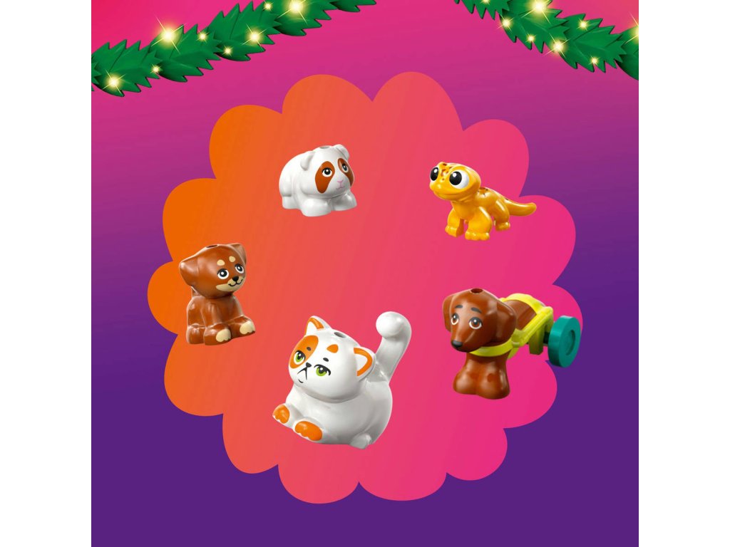 Vneste si domů sváteční atmosféru se stavebnicí Adventní kalendář 2025 pro děti od 6 let. Malí stavitelé každý den otevřou jedno okénko, za kterým najdou celkem 5 minipanenek včetně Aliyi, Autumn, Liann, Novy a Lea a 5 figurek zvířátek LEGO včetně 2 psů, morčete, gekona a kočky. Každý den vás za jedním okénkem čeká kousek příběhu o vánoční přespávačce. Objevte překvapení se sladkými vánočními modely a sváteční aktivity, jako je psaní dopisu Santovi, zdobení stromečku, zpívání karaoke, jízda na koníčkovi a příprava horké čokolády. Každá minipanenka má matraci a každé zvířátko má doplňky. Děti si tak při sestavování scény vymyslí řadu příběhů. Mezi další zábavné doplňky patří pohovka, lampa, krb, sáňky, 5 dárkových krabiček a plyšový sob LEGO. Tato kreativní stavebnice slouží nejen jako dárek k vánočnímu odpočítávání pro děti, ale také podporuje sociální dovednosti malých stavitelů, kteří se připojí k kamarádům a společně s nimi prožijí nezapomenutelnou přespávačku.