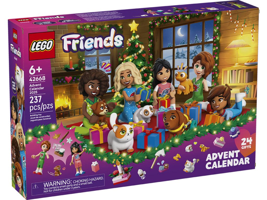 LEGO 42668 - Adventní kalendář 2025 rozkládací s herní plochou z produktové řady LEGO FRIENDS. Dětské plastové kostky v krabici.