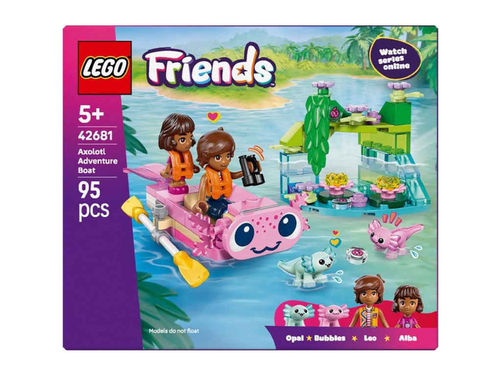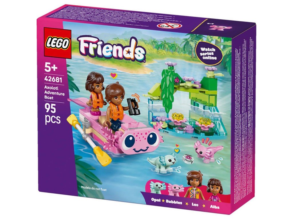 LEGO 42681 - Dobrodružný člun s axolotly z produktové řady LEGO FRIENDS. Kvalitní, dětské plastové kostky.