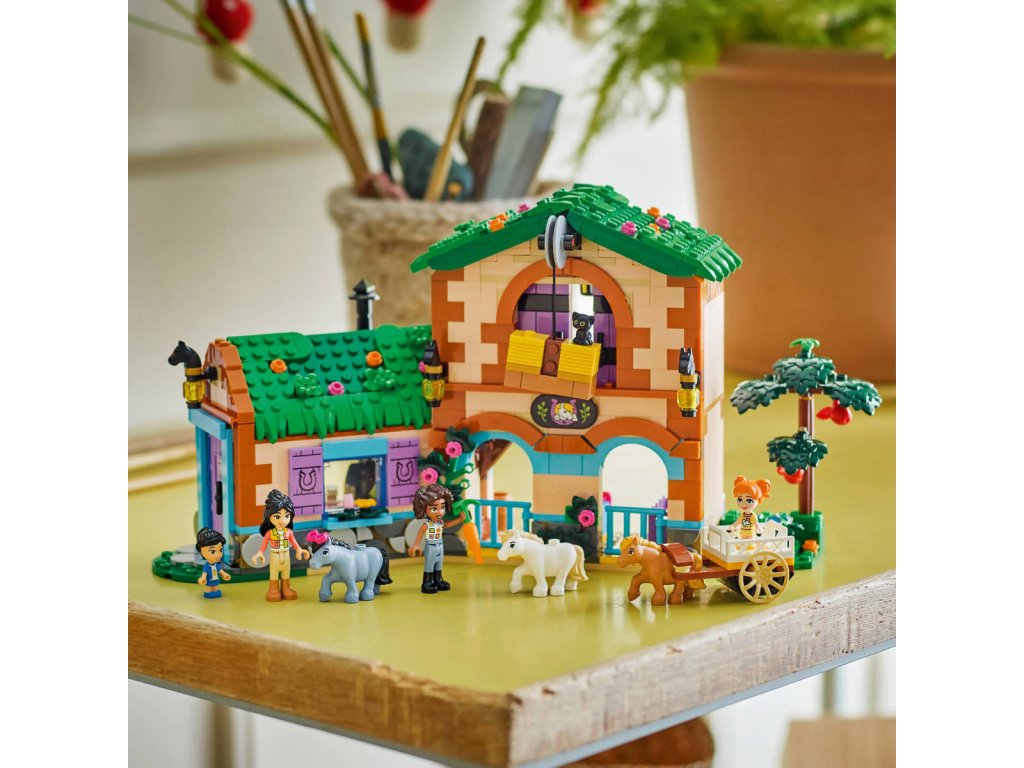 Představujeme vám stavebnici, kterou si zamilují všichni milovníci koní! Stavebnice Ranč s poníky a stáj inspiruje holky a kluky od 7 let k vymýšlení vlastních příběhů o přátelství a zvířátkách. Součástí je sestavitelný ranč s poníky se stájemi a obytnými prostory, vozík, 2 minipanenky, 2 mikropanenky, figurka kočky, 3 figurky poníků a spousta doplňků pro kreativní hraní. Děti se vydají na nekonečná dobrodružství s Aliyou, Liann, Victorií a Ellou. Hřebelcování a krmení 3 poníků bude spousta zábavy! Dokonce tu najdete i funkční výtah na seno, s jehož pomocí přemístíte balíky sena do seníku nebo na vozík. V ranči je útulný obývací prostor a seník, ve kterém budou kamarádky spát nad stájí – splněný sen každého milovníka koní!