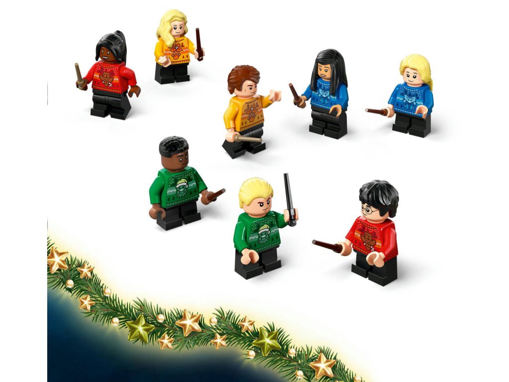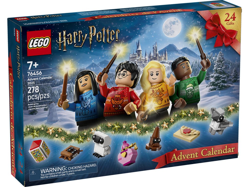 Každý den otevřete okénko do hravých dobrodružství se stavebnicí LEGO Harry Potter Adventní kalendář 2025. Tato kouzelná stavebnice s Harrym Potterem pro kluky, holky a všechny fanoušky od 7 let je plná sestavitelných překvapení, se kterými se můžete vydat na vlastní vánoční příběhy ze světa čar a kouzel. Adventní kalendář obsahuje figurky LEGO kouzelných tvorů, jako je Klofan, Aragog a patron v podobě jelena. Součástí je také 8 minifigurek oblíbených postav LEGO, včetně Harryho Pottera, Cho Changové, Draca Malfoye a Lenky Láskorádové, které na sobě mají bradavické vánoční svetry a v rukou hůlky. Nechybí spousta sběratelských mini modelů slavných předmětů, jako je dopis o přijetí do Bradavic, krabička Bertíkových fazolek tisíckrát jinak, Moudrý klobouk, řada kouzelných lektvarů a Obludné obludárium, se kterými si děti užijí ještě více herních možností. Model obsahuje 278 dílků.