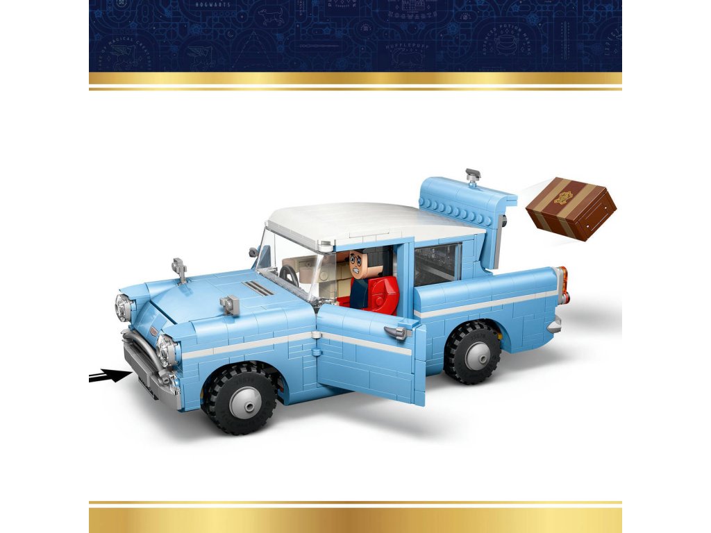 Zažehněte jiskru představivosti malých kouzelníků, čarodějek a mudlů se stavebnicí kouzelného létajícího auta Ford Anglia rodiny Weasleyových na hraní i na výstavku. Tato stavebnice představuje skvělý dárek pro kluky, holky a fanoušky Harryho Pottera od 14 let. Jedná se o nejpropracovanější model tohoto slavného vozidla z kostek LEGO® vůbec. Usaďte do auta figurky Rona Weasleyho a Harryho Pottera z kostek, nezapomeňte na Harryho sovu Hedviku, a připomeňte si scény z filmu Harry Pottera Tajemná komnata. Aktivujte magické funkce, díky kterým se otevře kufr a dveře a zavazadla hrdinů vystřelí z kufru, stejně jako ve filmu.