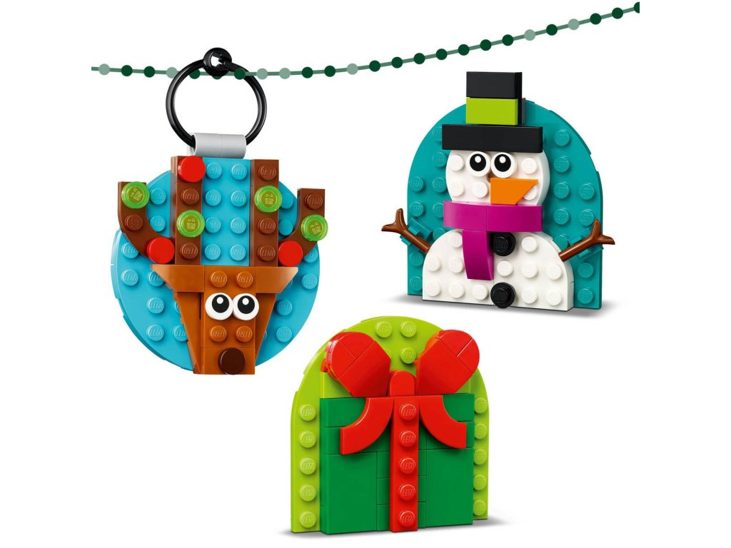 Ponořte se o Vánocích do tvořivých chvilek se stavebnicí Sada vánočních ozdob pro holky a kluky od 6 let, se kterou si malí stavitelé postaví 4 závěsné dekorace, které jim budou celá léta kouzlit úsměv na tváři. Děti si užijí spoustu zábavy při skládání ozdob, které pak ozdobí vánočními motivy: Vánočním dárkem, Santa Clausem, sobem a sněhulákem. Ozdoba s dárkem má nahoře mašli, ozdoba se Santou má čepici a bílé vousy, ozdoba se sněhulákem je zachumlaná v teplém šálu a má mrkev namísto nosu a ozdoba se sobem má zdobené parohy. Tato stavebnice je ideální na samostatné nebo skupinové stavění. Nabízí zábavný způsob, jak si mohou rodiny během svátků užít společné chvíle při skládání barevných vánočních ozdob z kostek LEGO. Po sestavení ozdoby pověste na stromeček, přizpůsobte s nimi dárky nebo si je vystavte s dalšími vánočními dekoracemi LEGO (prodávají se samostatně) a vytvořte poutavé vánoční aranžmá z kostek.