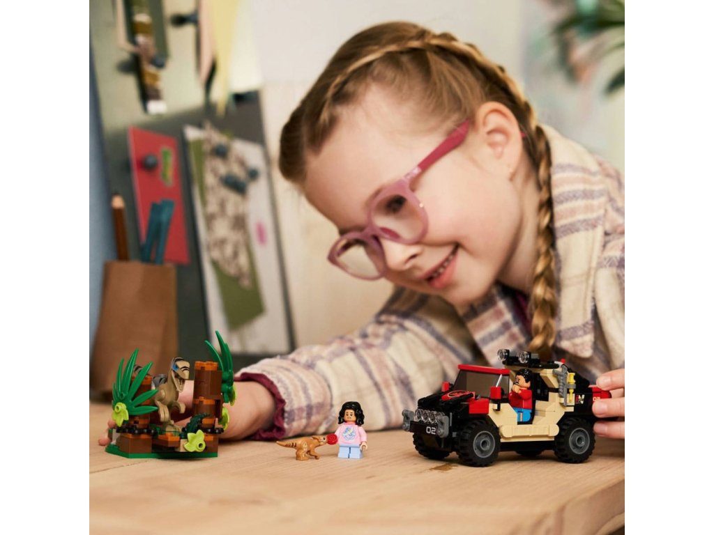 Stavebnice LEGO Jurassic World Únik před raptorem v terénním autě je inspirovaná filmem Jurassic World: Rebirth a poslouží jako skvělý dárek pro kluky a holky od 6 let, kteří milují tyto pravěké tvory. Až děti stavebnici poskládají, připomenou si své oblíbené filmové scény nebo vymyslí nové příběhy s minifigurkami Reubena a Isabelly Delgadových, figurkou mláděte dinosaura Dolores a figurkou velociraptora s pohyblivou čelistí. Stavebnice obsahuje terénní auto a sledovací zařízení, keř se efektem „překvapení“, který můžete použít během hry s velociraptorem, a spoustu dalšího. Aplikace LEGO Builder provede malé fanoušky dinosaurů intuitivním stavitelským dobrodružstvím, které jim umožní přibližovat a otáčet modely ve 3D, ukládat stavebnice a sledovat postup stavění. Stavebnice je kompatibilní s dalšími sadami LEGO a LEGO Jurassic World (všechny se prodávají samostatně). Děti i dospělí si zamilují funkci „překvapení“, která dodává hernímu zážitku nový rozměr. Stavebnice se skládá z 285 dílků.